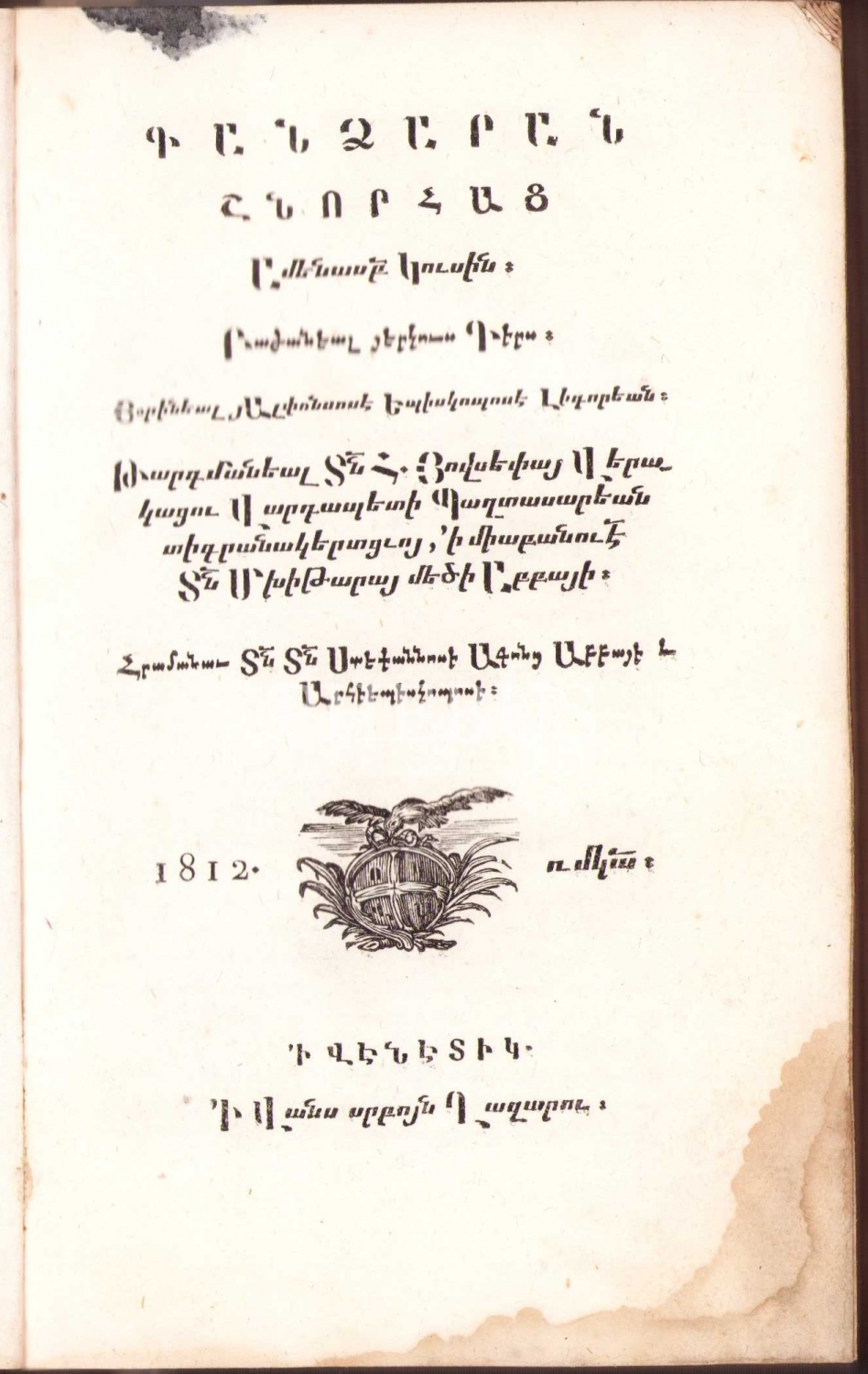 Ermenice Kitap, 1812, 518 sayfa+3 gravür, 19x12 cm