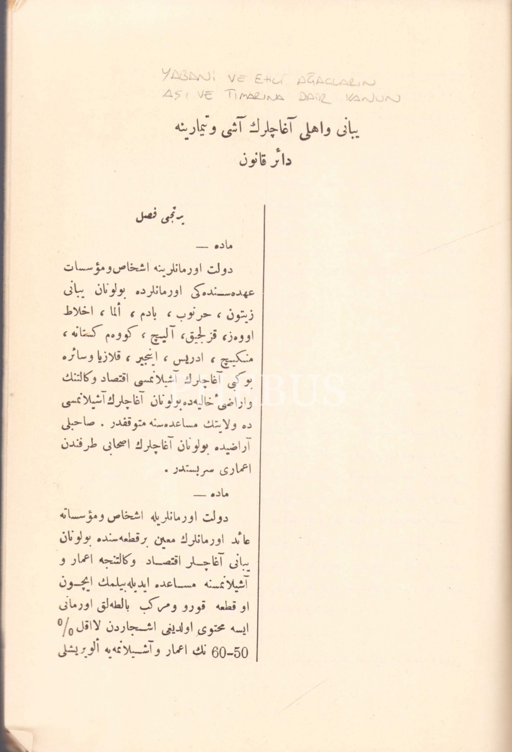 Osmanlıca Yabani ve Ehli Ağaçların Aşı ve Timarına Dair Kanun, Ankara Yenigün Matbaası, 1928, 16 sayfa, 24x17 cm