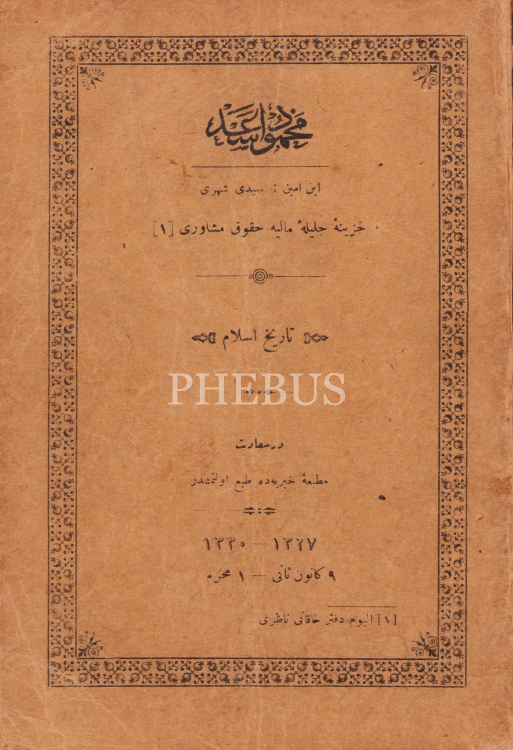 Osmanlıca Tarih-i İslâm, Mahmud Esad b. Emin Seydişehrî, İstanbul 1330 Matbaa-i Hayriye, 188 + 1 sayfa, 20x14 cm, ÖZEGE; 19838