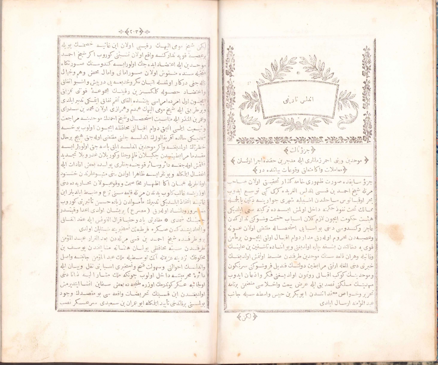 Osmanlıca Tarih-i Endülüs 2.Cilt, Ziya Paşa, 1280 Tercüman-ı Ahvâl Matbaası 5+202-537 sayfa, 26x17 cm, ÖZEGE; 4961