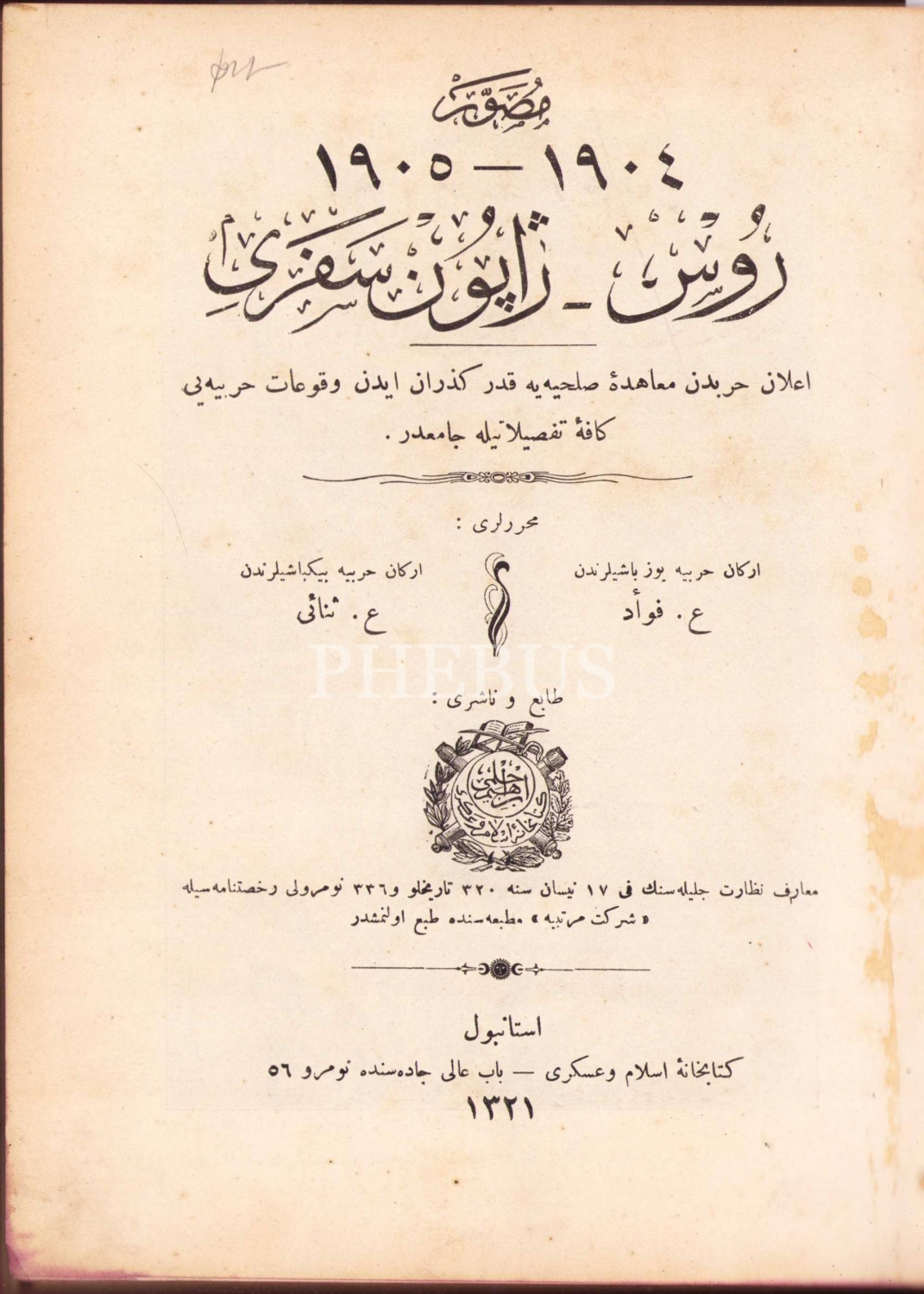 Osmanlıca Musavver 1904-1905 Rus Japon Seferi 1. Cilt, Ali Fuad [Erden] - Osman Senai [Erdemgil] İstanbul HYıl: 1321, Şirket-i Mürettibiye Matbaası, 320 sayfa,24x19 cm, ÖZEGE; 14434