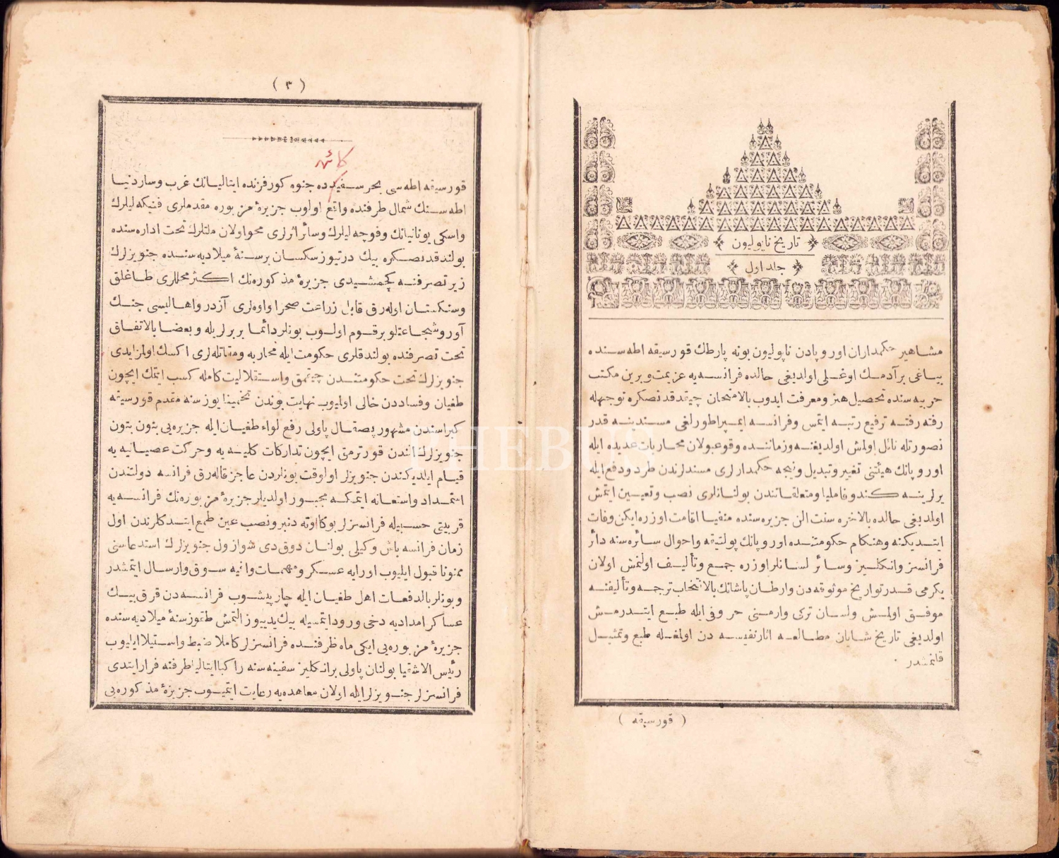Osmanlıca Tarih-i Napolyon 1. Cilt, Vartan Paşa, İstanbul 1285, Tophane-i Âmire, 261 sayfa, 23x14 cm, ÖZEGE; 19877