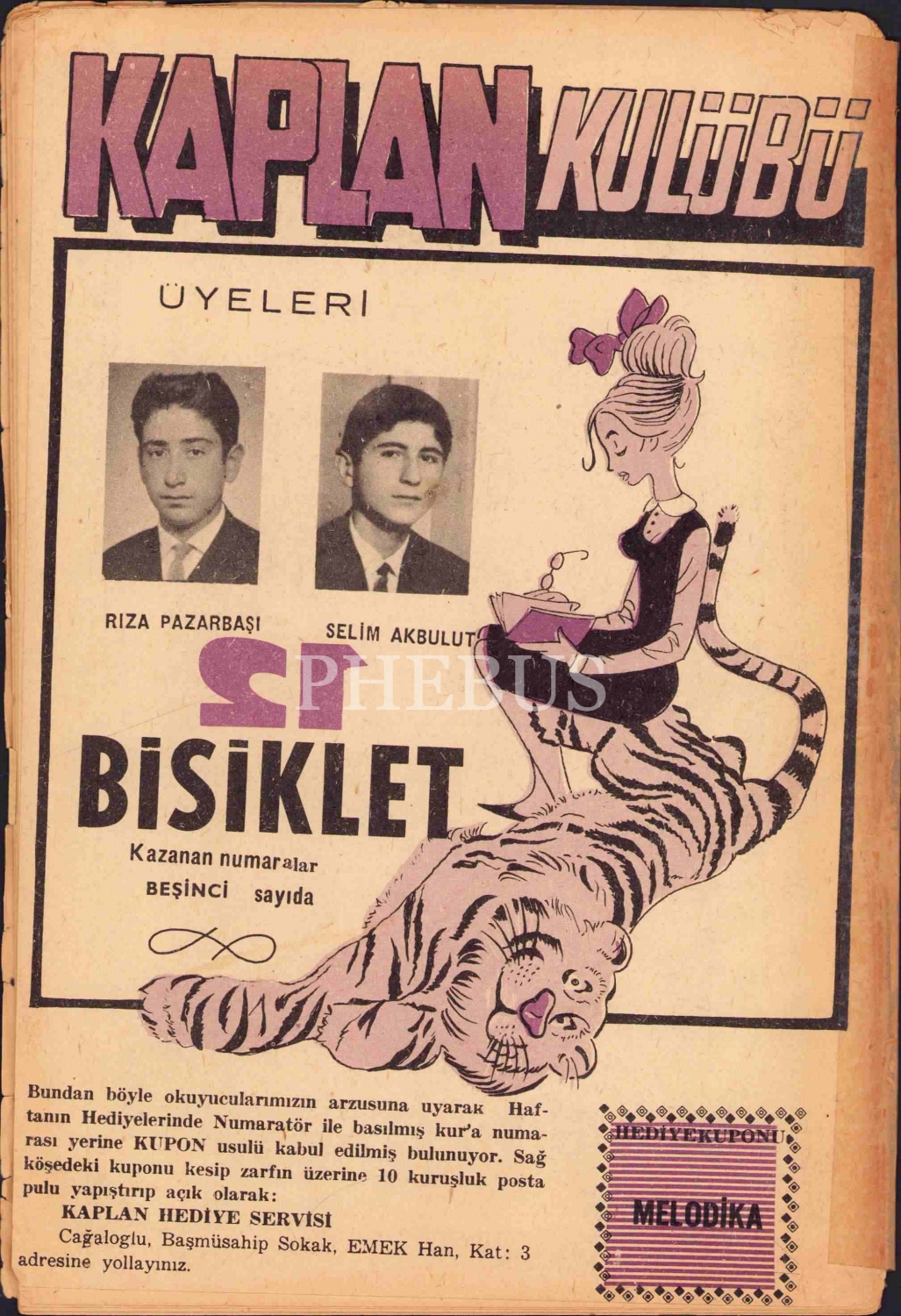 Kaplan - haftalık mecmua, 3. cilt, 5 sayı birarada, sırtı tamirli, 26 sayfa, 15x24 cm
