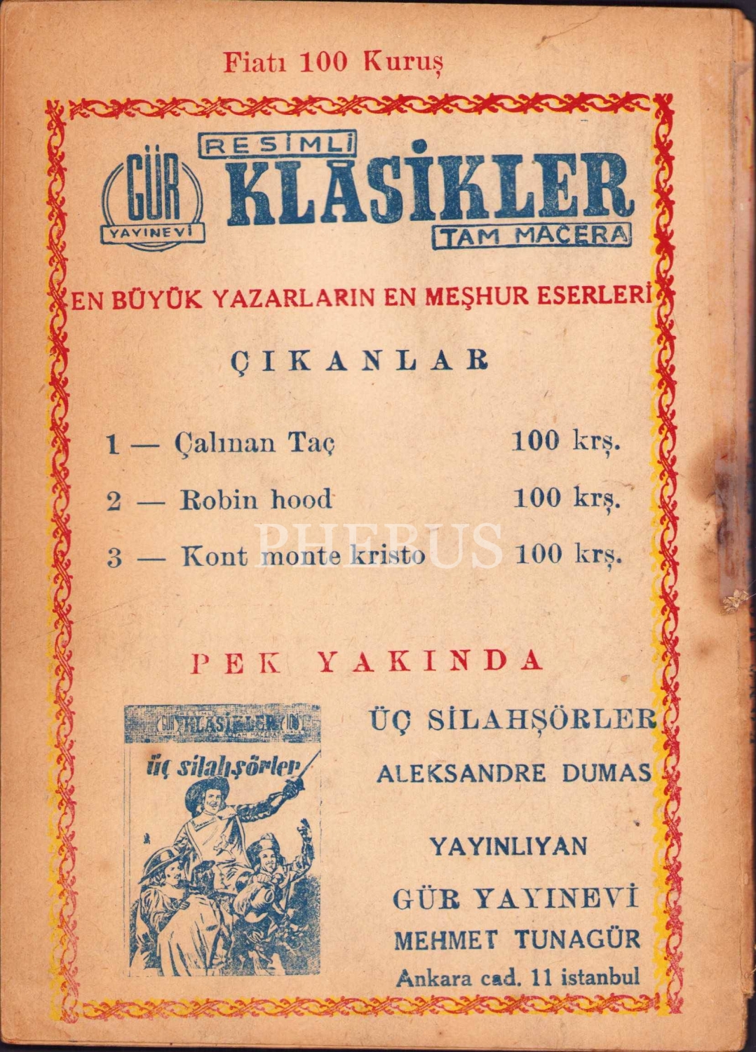 Kont Monte Kristo, Gür Yayınevi, Haşim Ofset Matbaası, 1962, sırtı haliyle, 48 sayfa, 12x18 cm