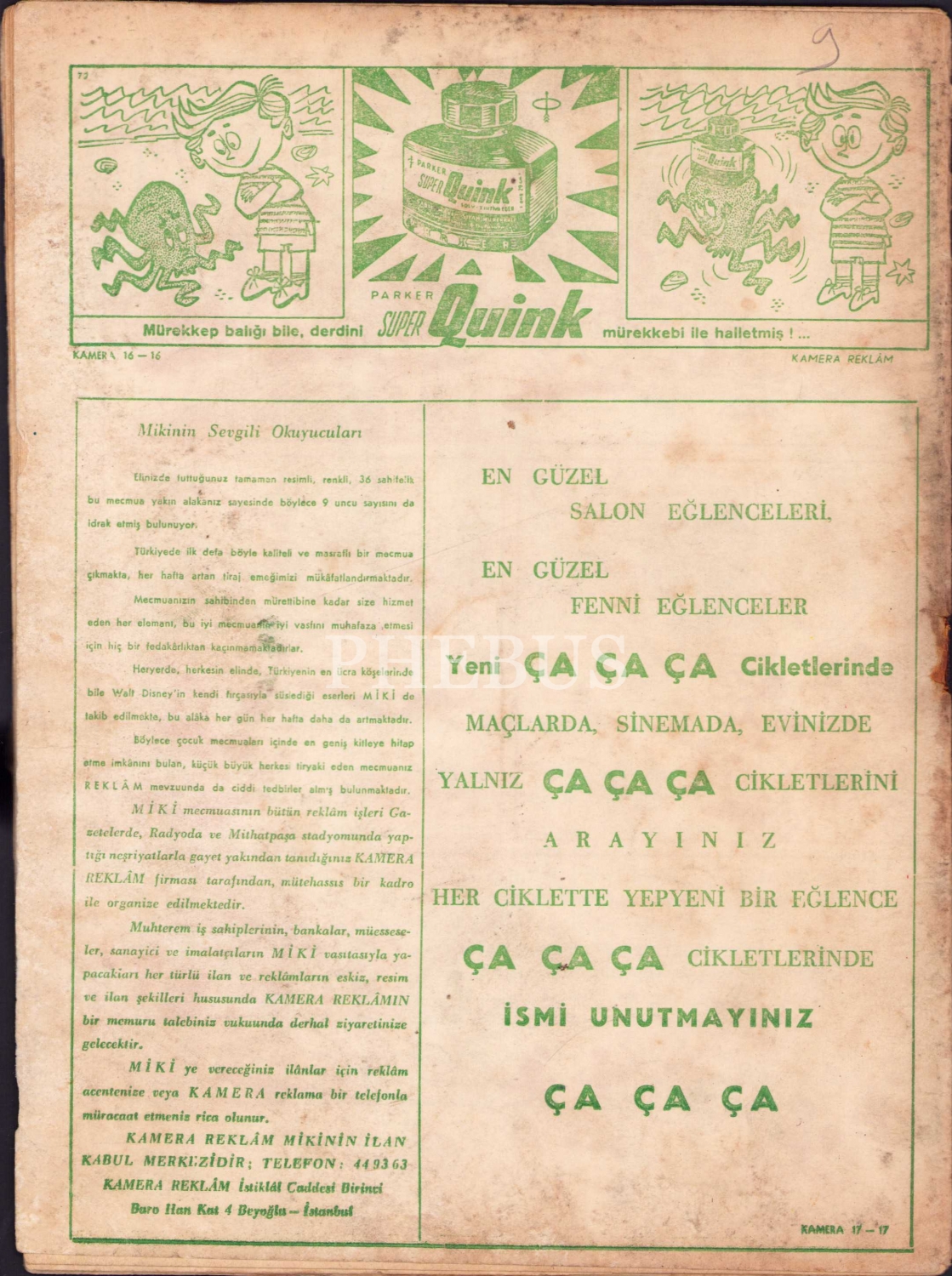 Miki - haftalık mecmua, Walt Disney, Sayı: 9, ön kapak bir kenar yırtık, 32 sayfa, 18x23 cm