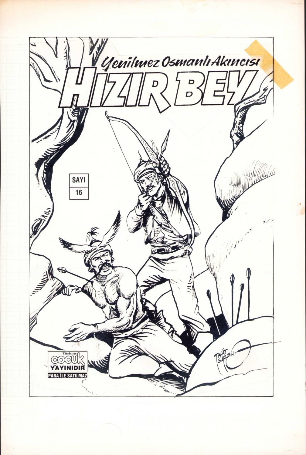 Yenilmez Osmanlı Akıncısı Hızır Bey, Sayı 16, kapak çizim çalışması, Talat Güreli imzalı, 22x34 cm