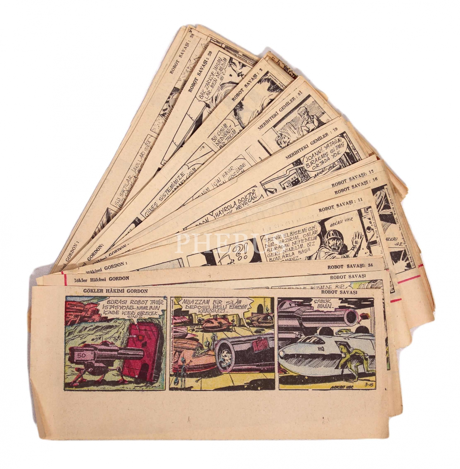 44 adet gazete küpürü, Gökler Hakimi Gordon - Robot Savaşı, 19x9 cm