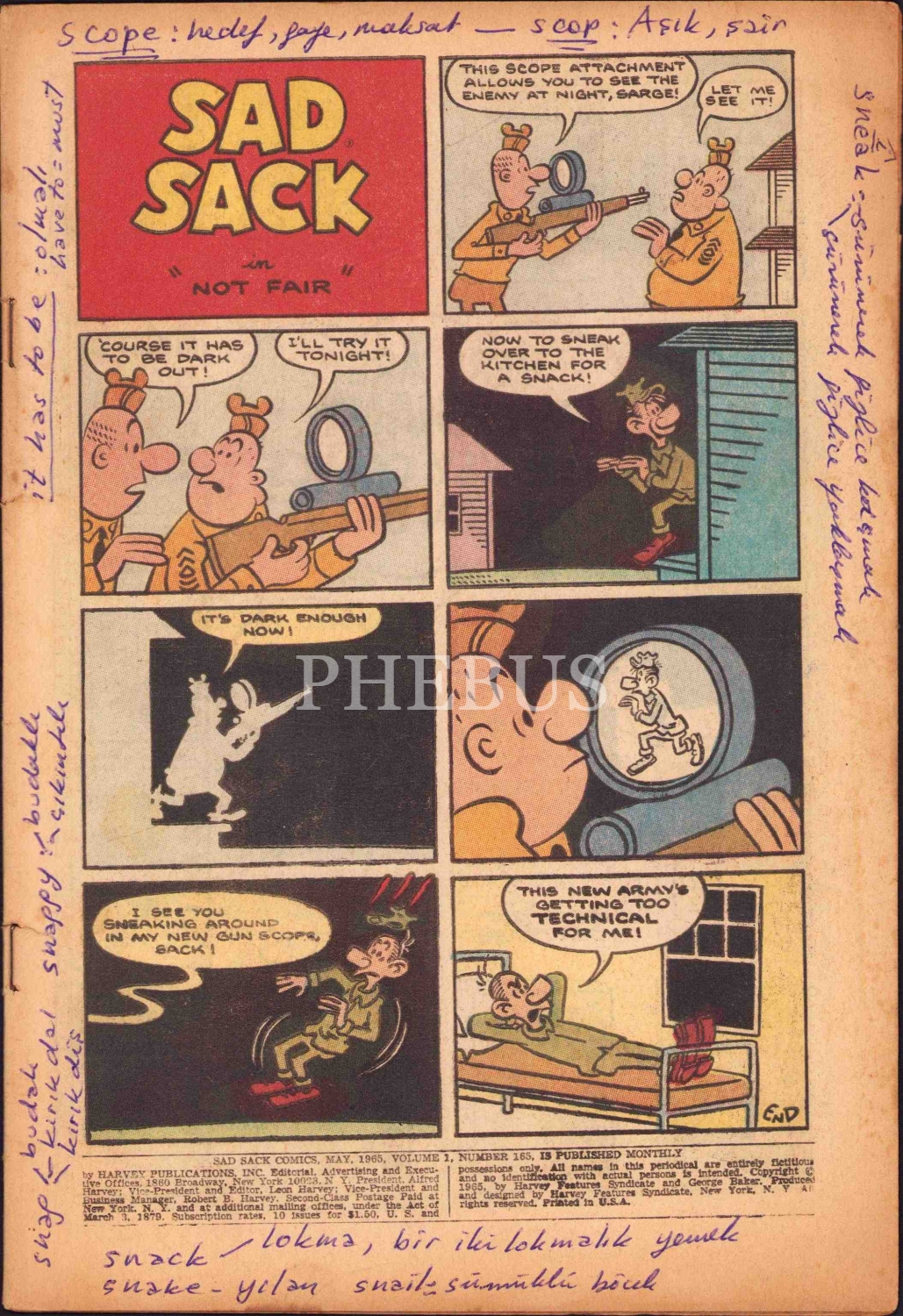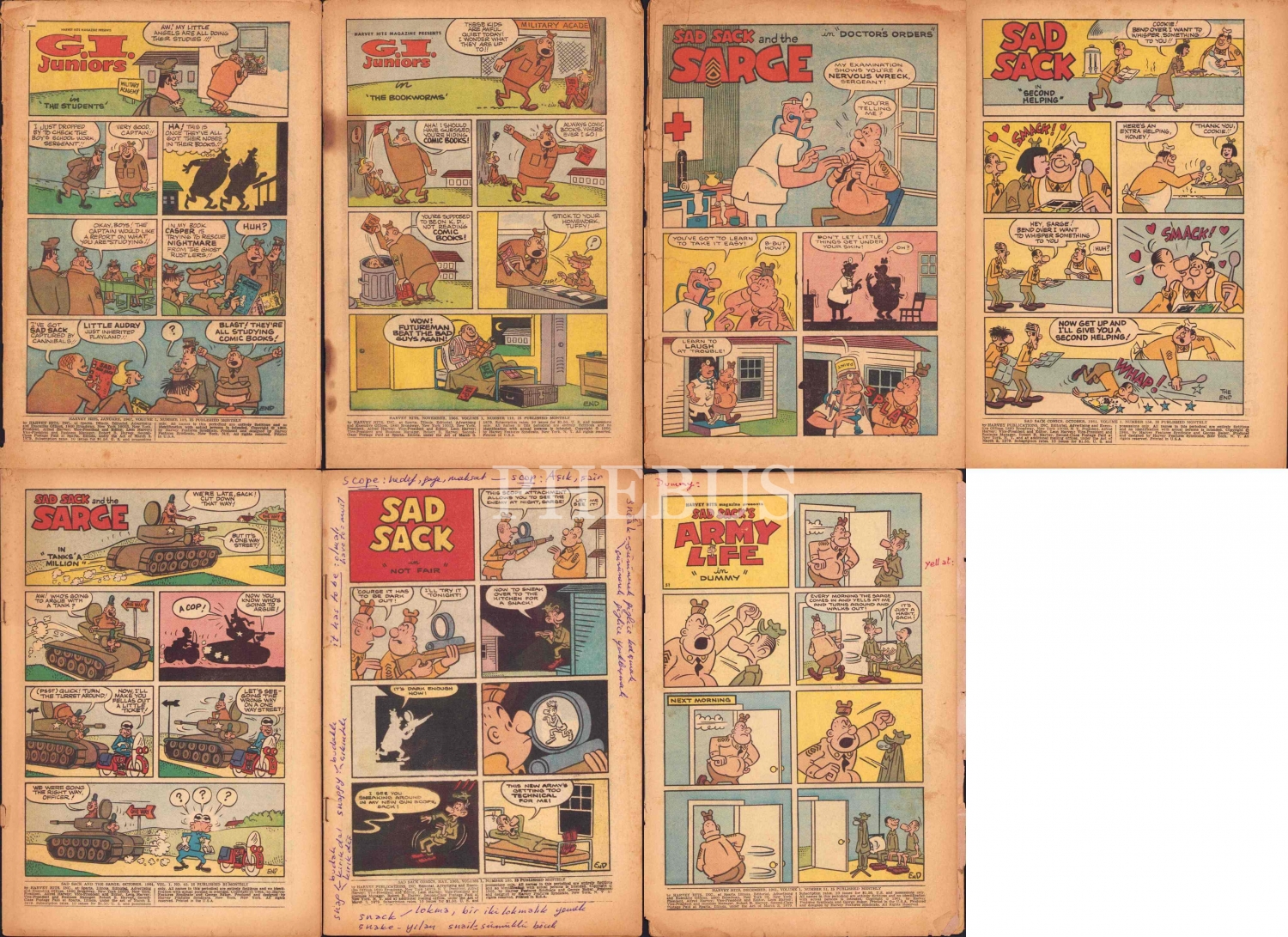 5 adet Sad Sack, İngilizce çizgi roman, kapaksız, haliyle, 16x26 cm