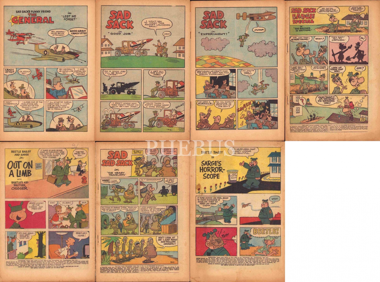 6 adet Sad Sack, İngilizce çizgi roman, kapaksız, haliyle, 16x26 cm