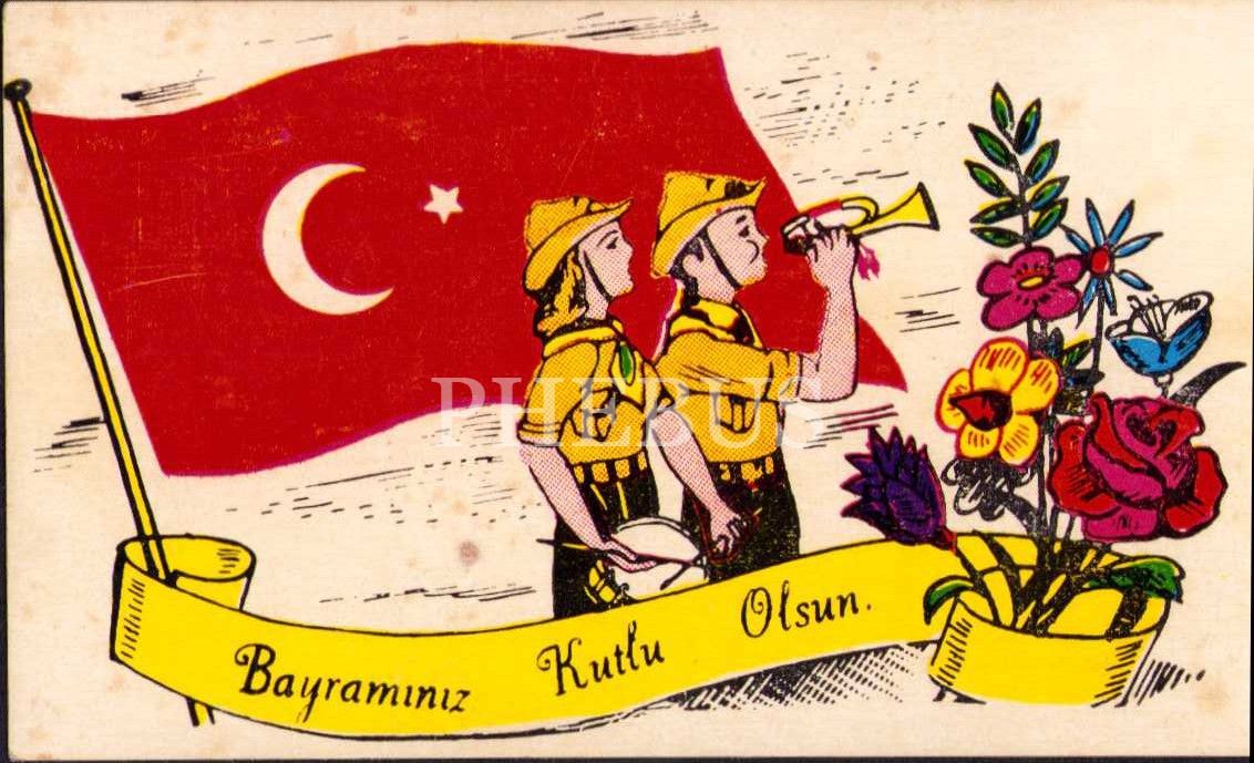 Bayram tebrik kartı, izci ve bayrak görselli, 10x5,5cm