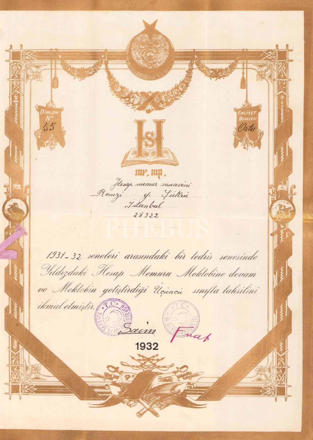 Hesap Memur Mektubu diploması, 1932, 40x30 cm