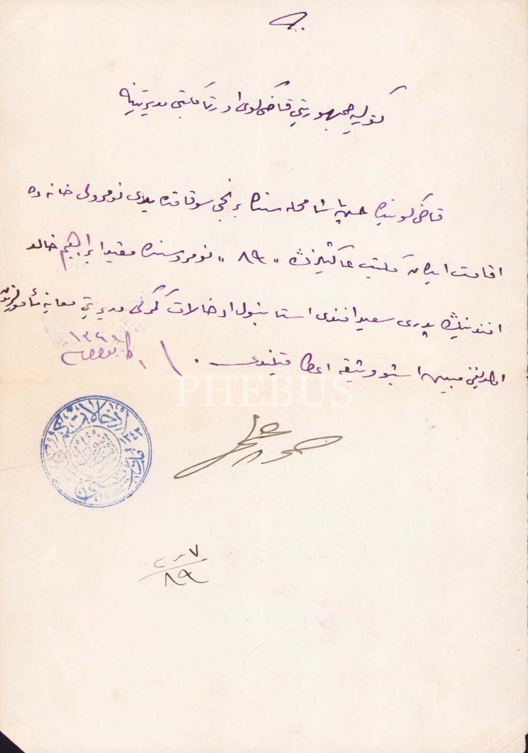 Kadıköy leyli orta mektebine yazılmış Osmanlıca evrak, 1341, 15x20 cm