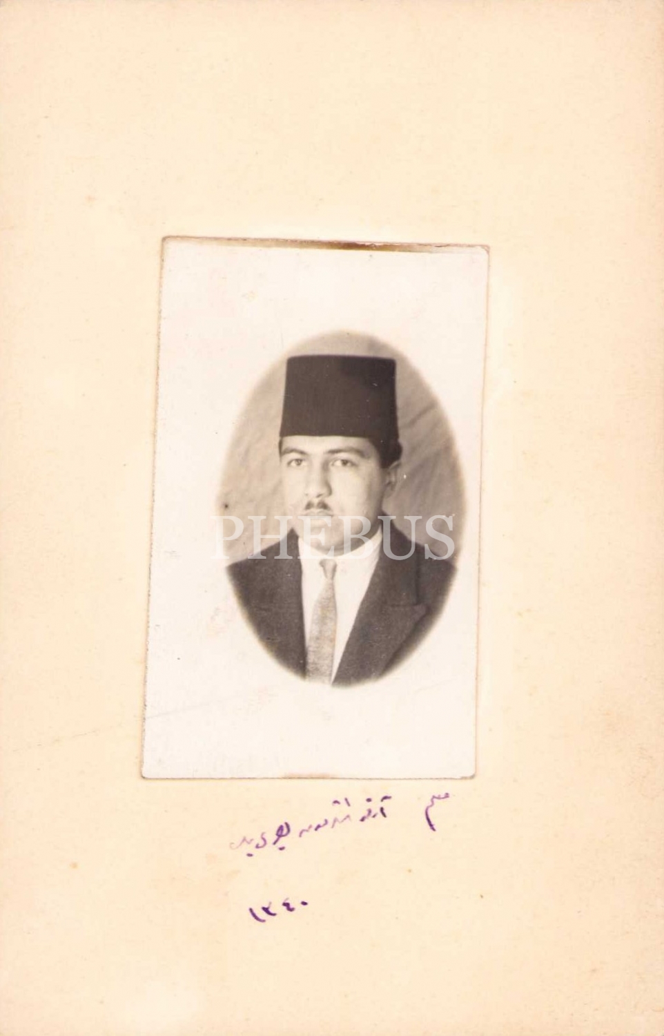 Fesli Osmanlı tip, Osmanlıca ithaf "Muallim arkadaşlarımızdan Sadi Bey 1340 tarihli", 14x9 cm