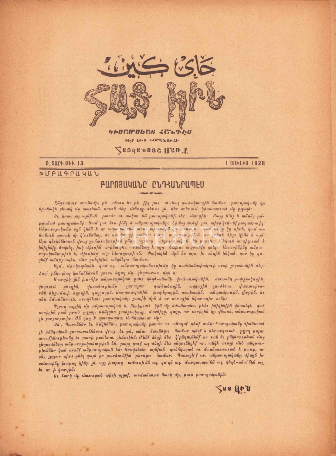 Ermenice Hay Gin Kadın Mecmuası 13. sayı, 1928, 24x35 cm