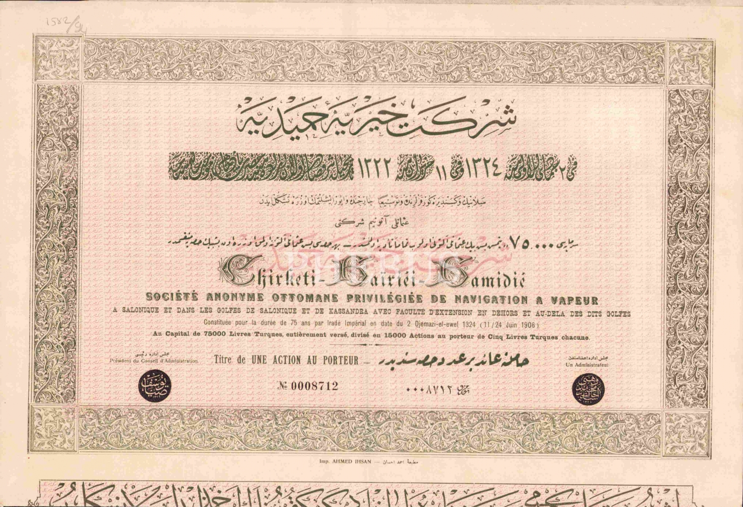 Şirket-i Hayriye-yi Hamidiye hisse senedi, 40x54 cm