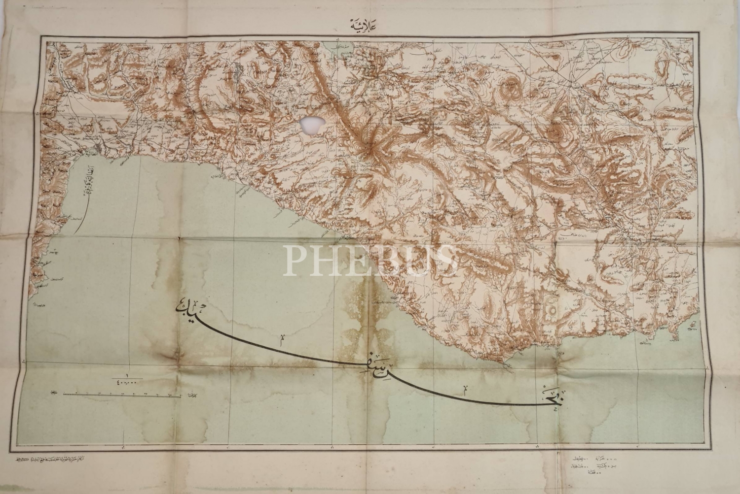 Osmanlıca Alanya haristası, Erkan-ı Harbiye-i Umumiye Matbaası, 1330, haliyle, 40x56 cm