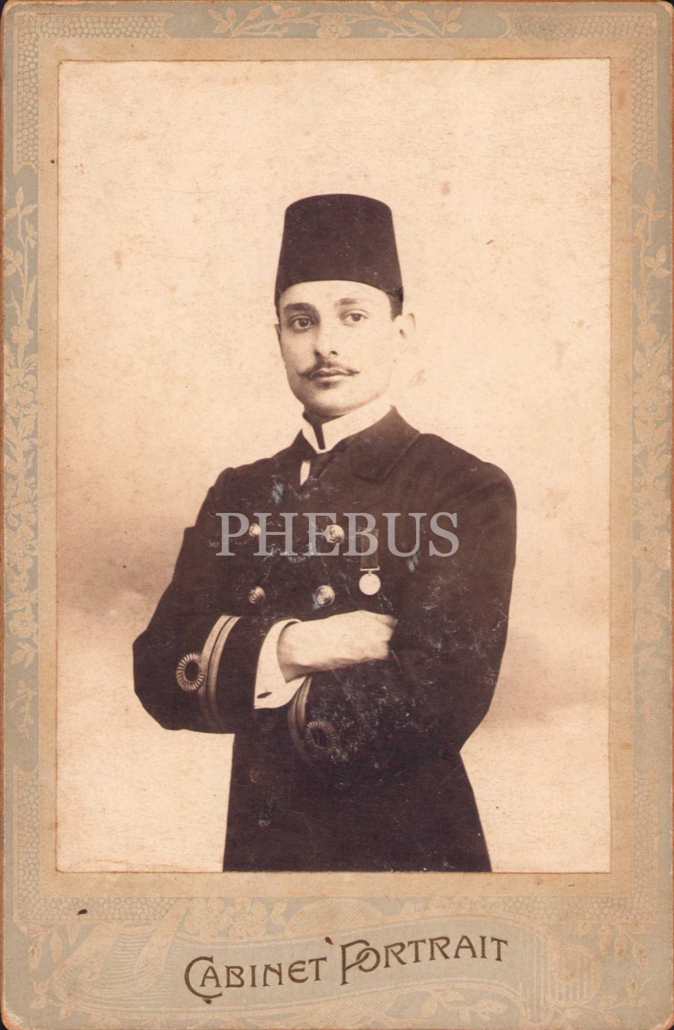 Fesli, madalyalı Osmanlı tip kabin fotoğrafı, 10x16 cm