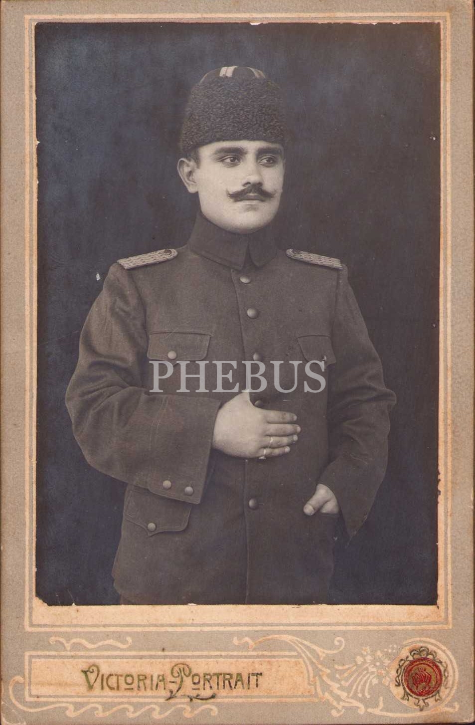 Kalpaklı Osmanlı askeri kabin fotoğrafı, 8x12 cm