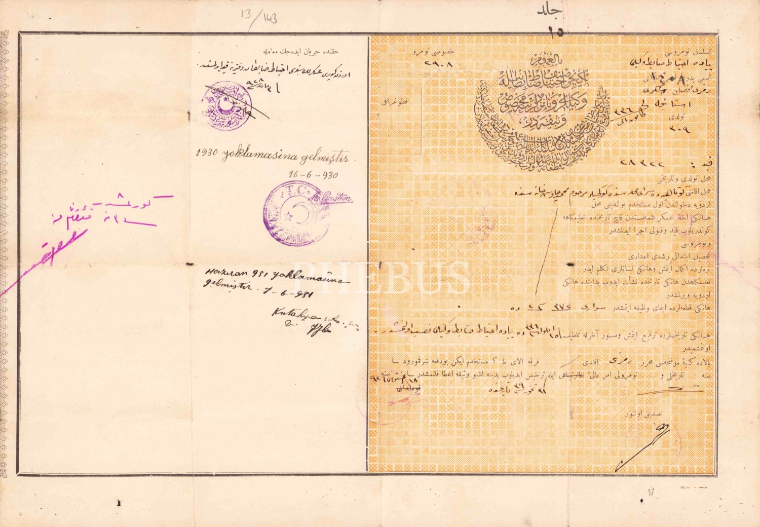 İkinci Sınıf İhtiyat Zabitlerine ve Vekilleri ve Namzedlerine mahsus varaka, damgalı, Osmanlıca, yıpranmış, 20x27 cm