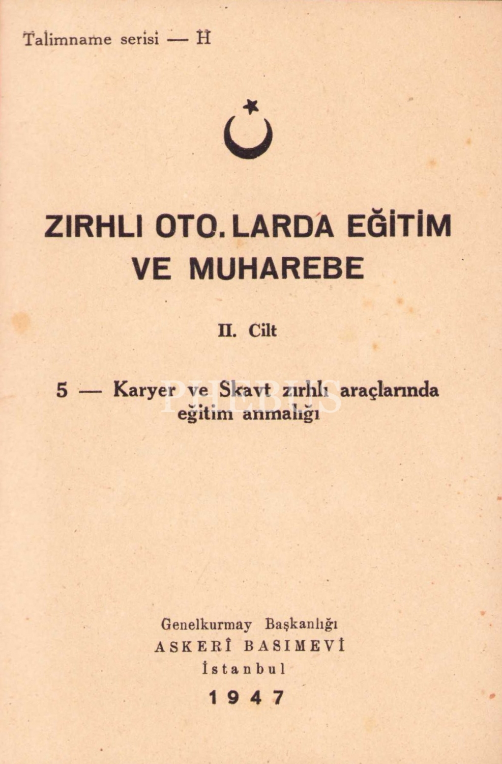 Zırhlı Oto.larda Eğitim ve Muharebe, II. Cilt, Askeri Basımevi, İstanbul, 1947, 36 sayfa, 11x15 cm
