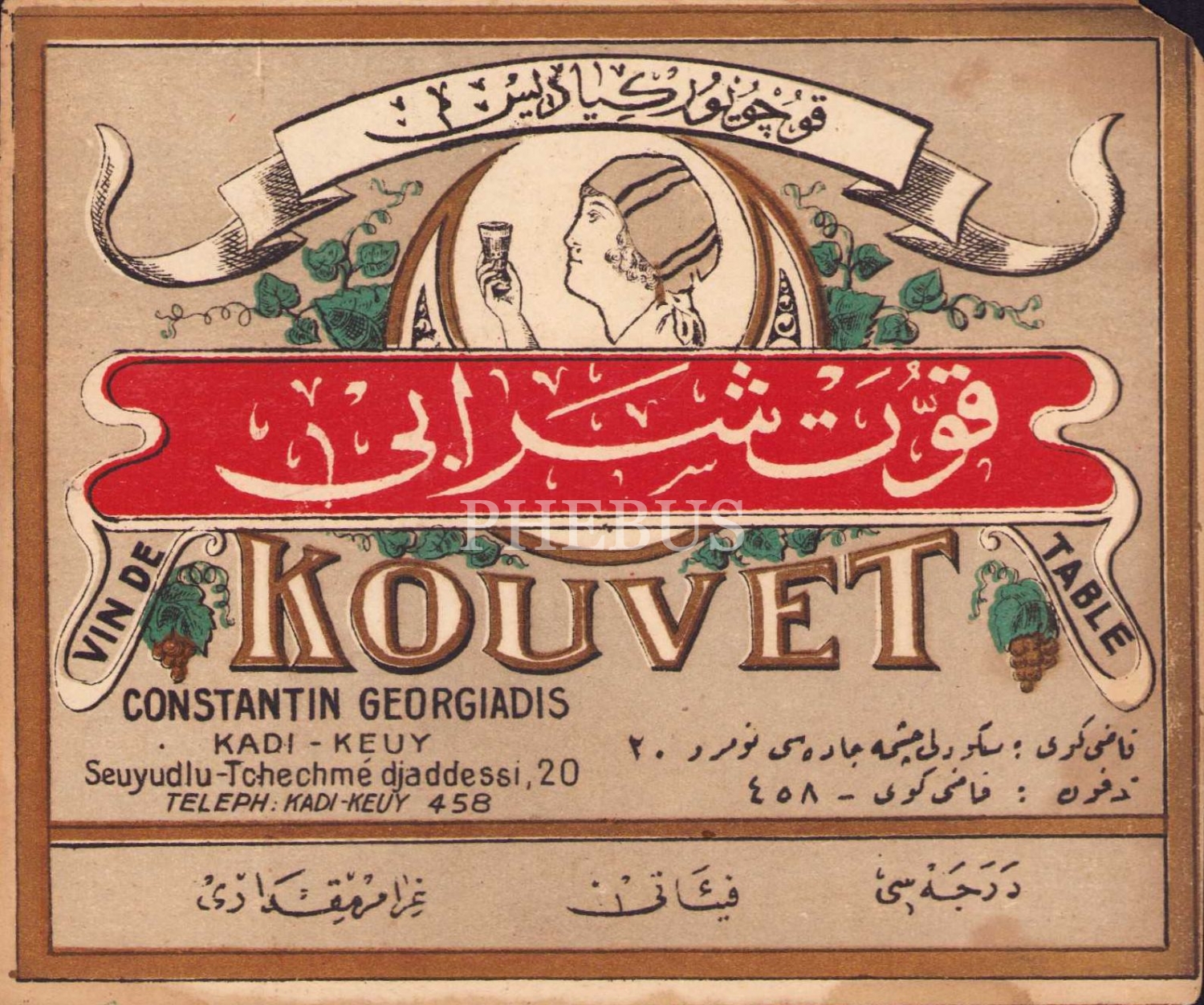 Osmanlıca Fransızca Kuvvet Şarabı etiketi, bir kenar yırtık, 12x10 cm