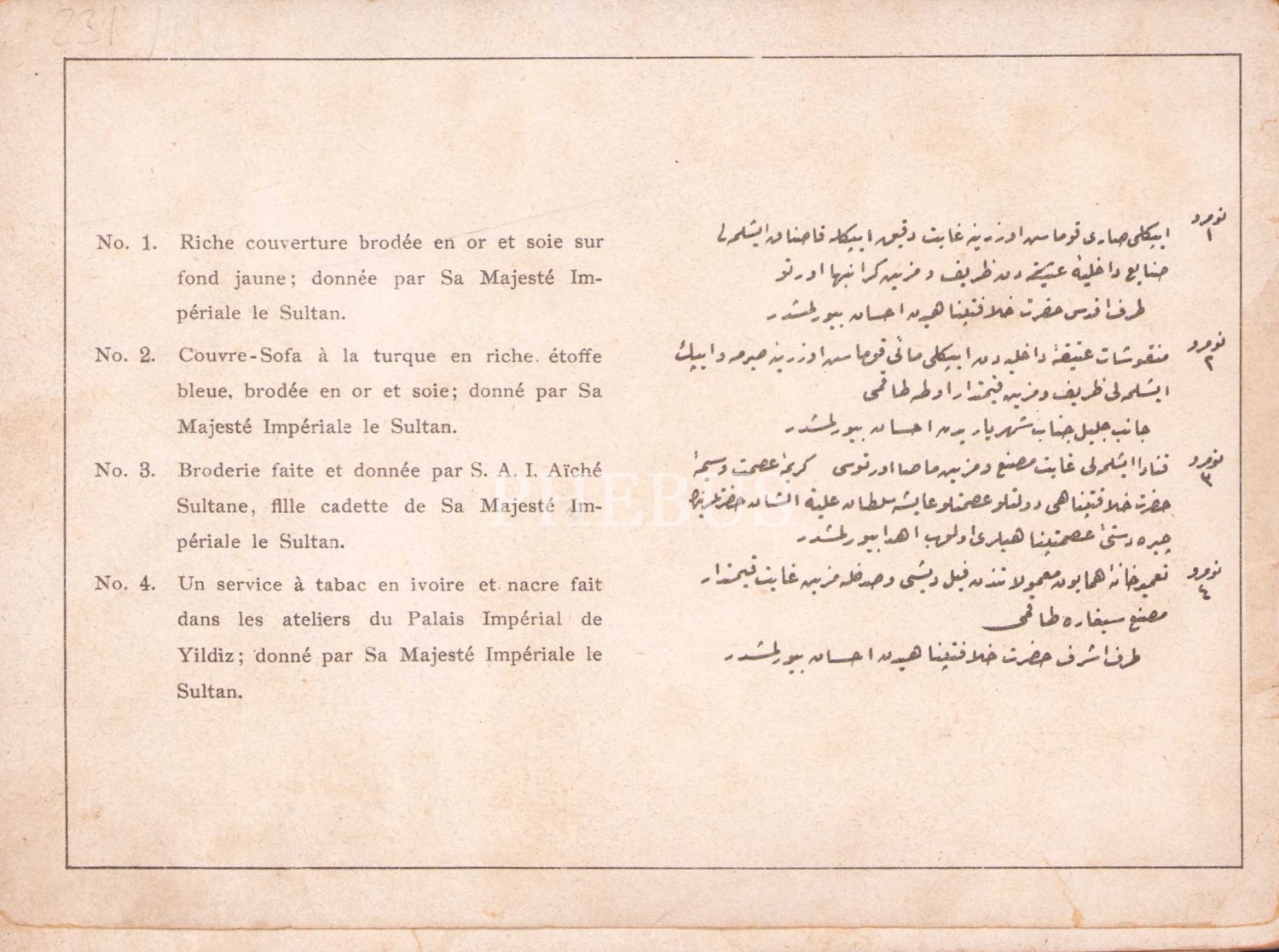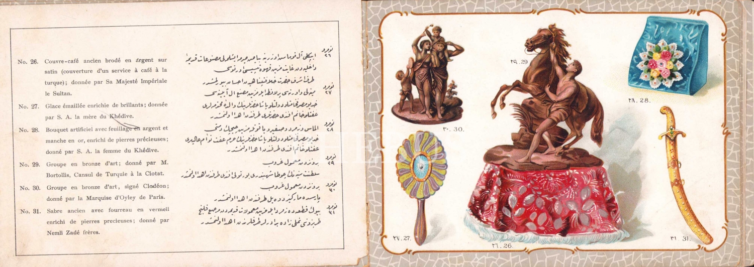 Osmanlıca Fransızca Şehit ve Gaziler İçin Düzenlenen Yıldız Sarayı Müzayede Kataloğu, başı eksik, haliyle, 30 sayfa,18x13 cm