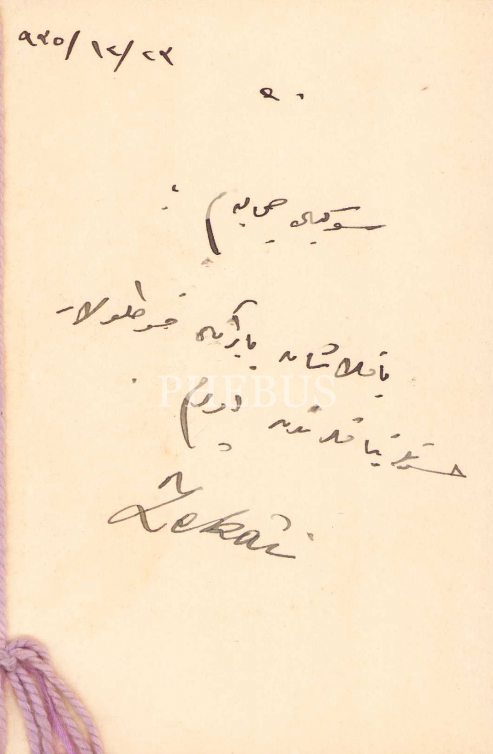 Gofre kart, 1935 tarihinde Zekai Bey tarafından yazılmış Osmanlıca ithaflı, 9x12 cm
