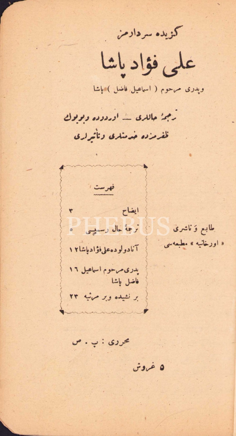 Osmanlıca Güzide Serdarımız Ali Fuad Paşa ve Pederi merhum İsmail Fazıl Paşa tercüme-i halleri - Orduda Büyük Zaferimizde Hizmetleri ve Tesirleri, Peyami Safa