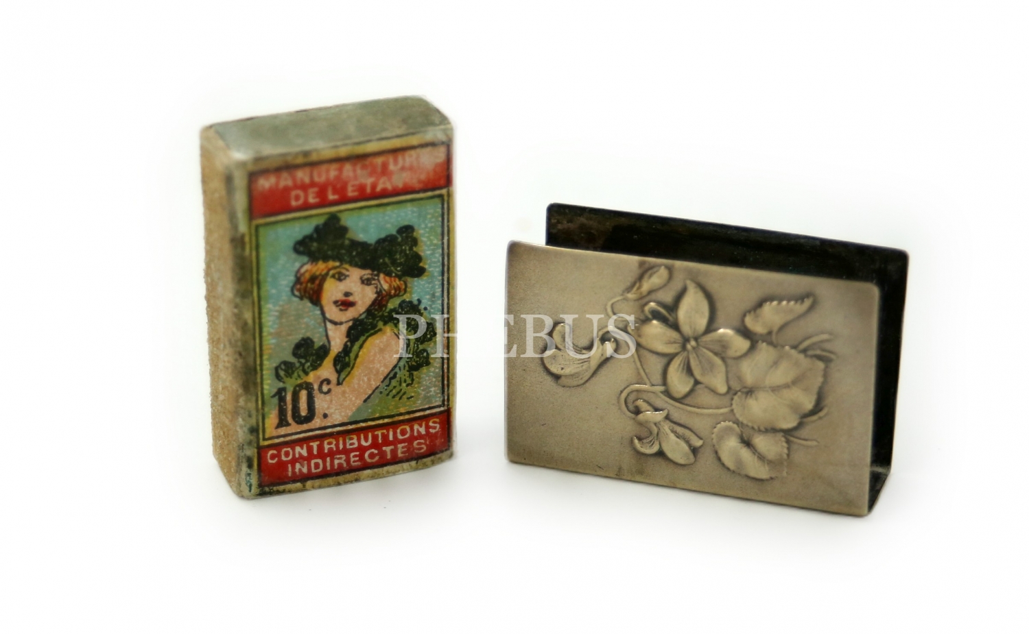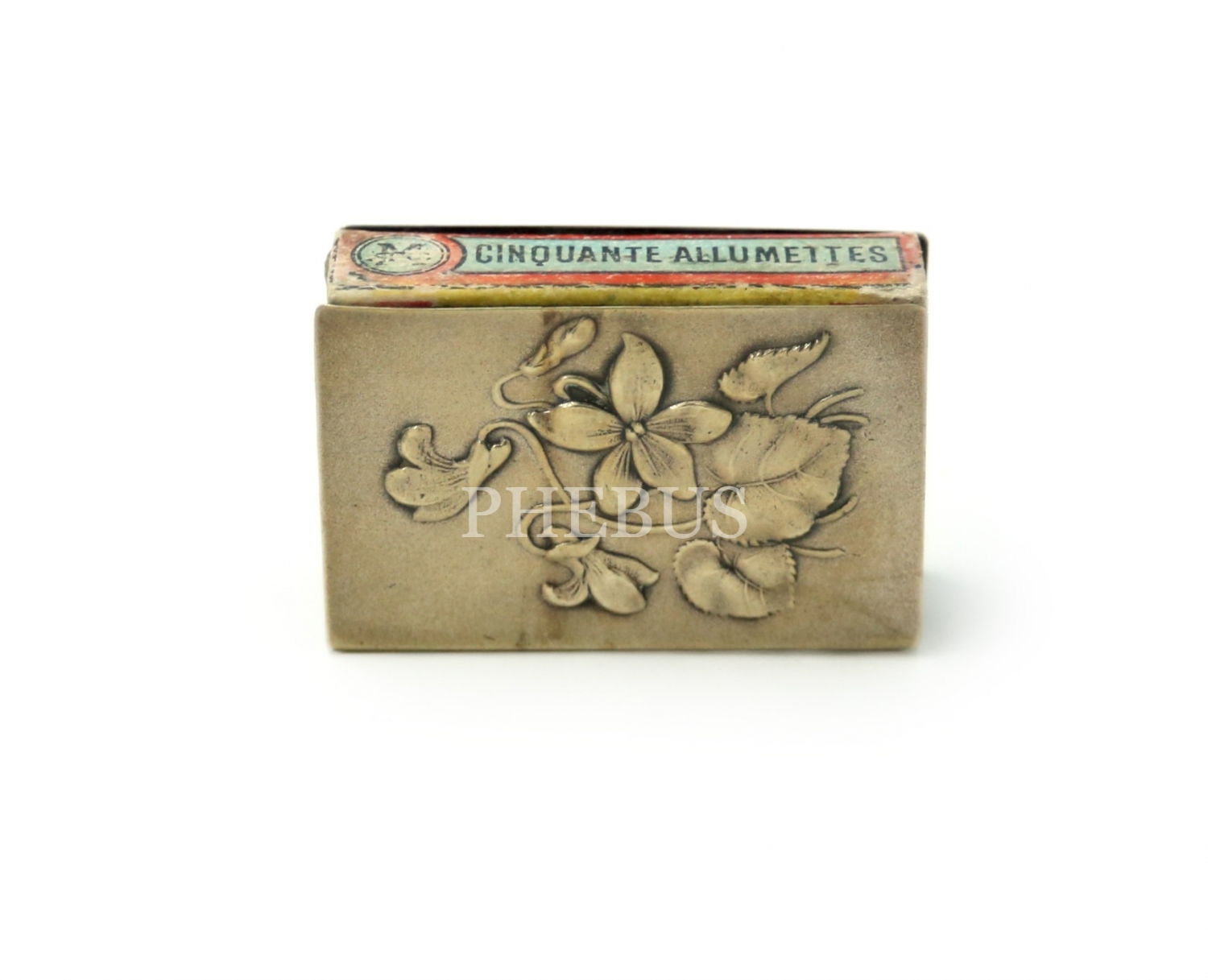 Kabartma çiçek desenli teneke kibritlik, içi dolu, 3x5x1 cm