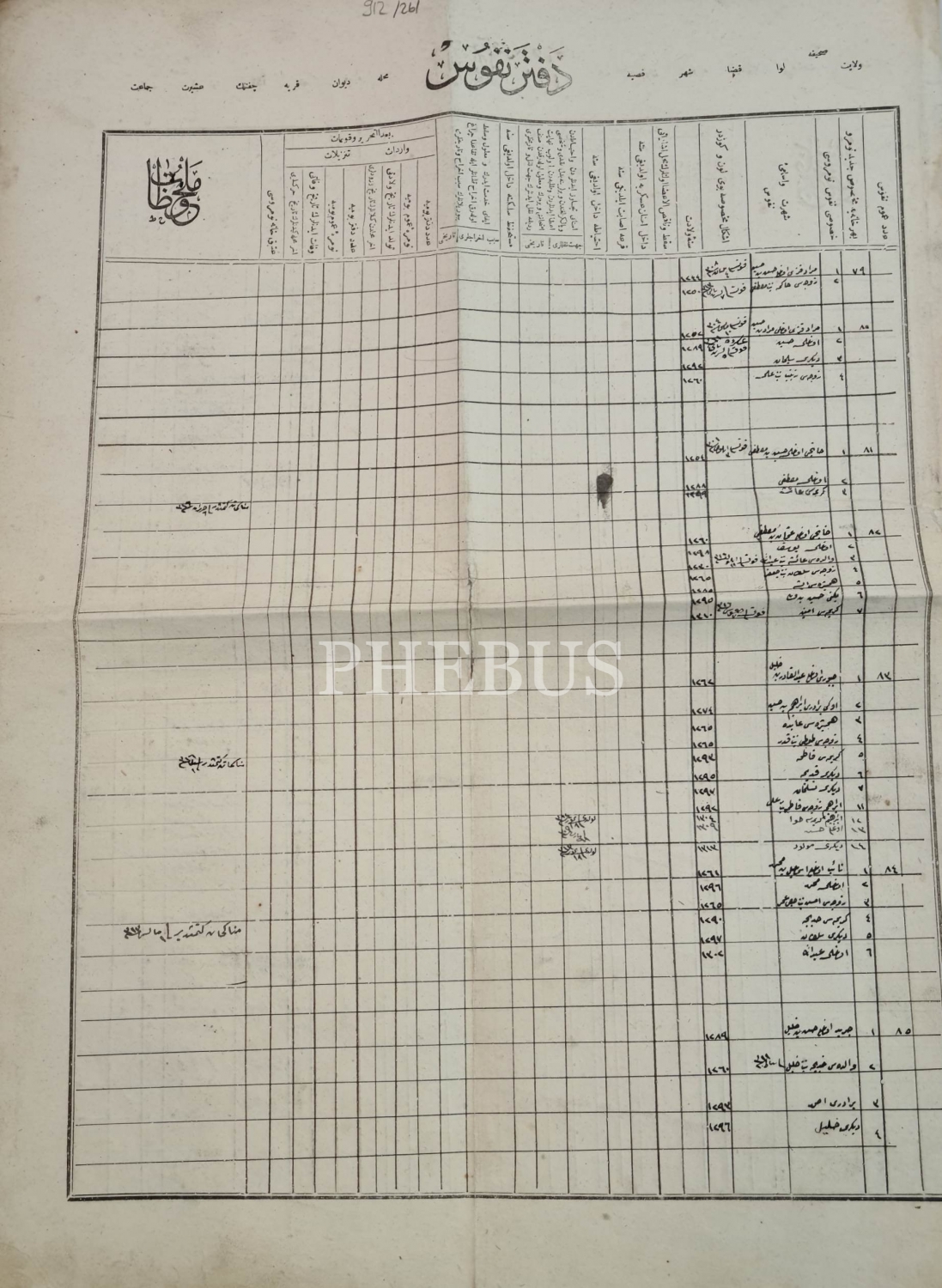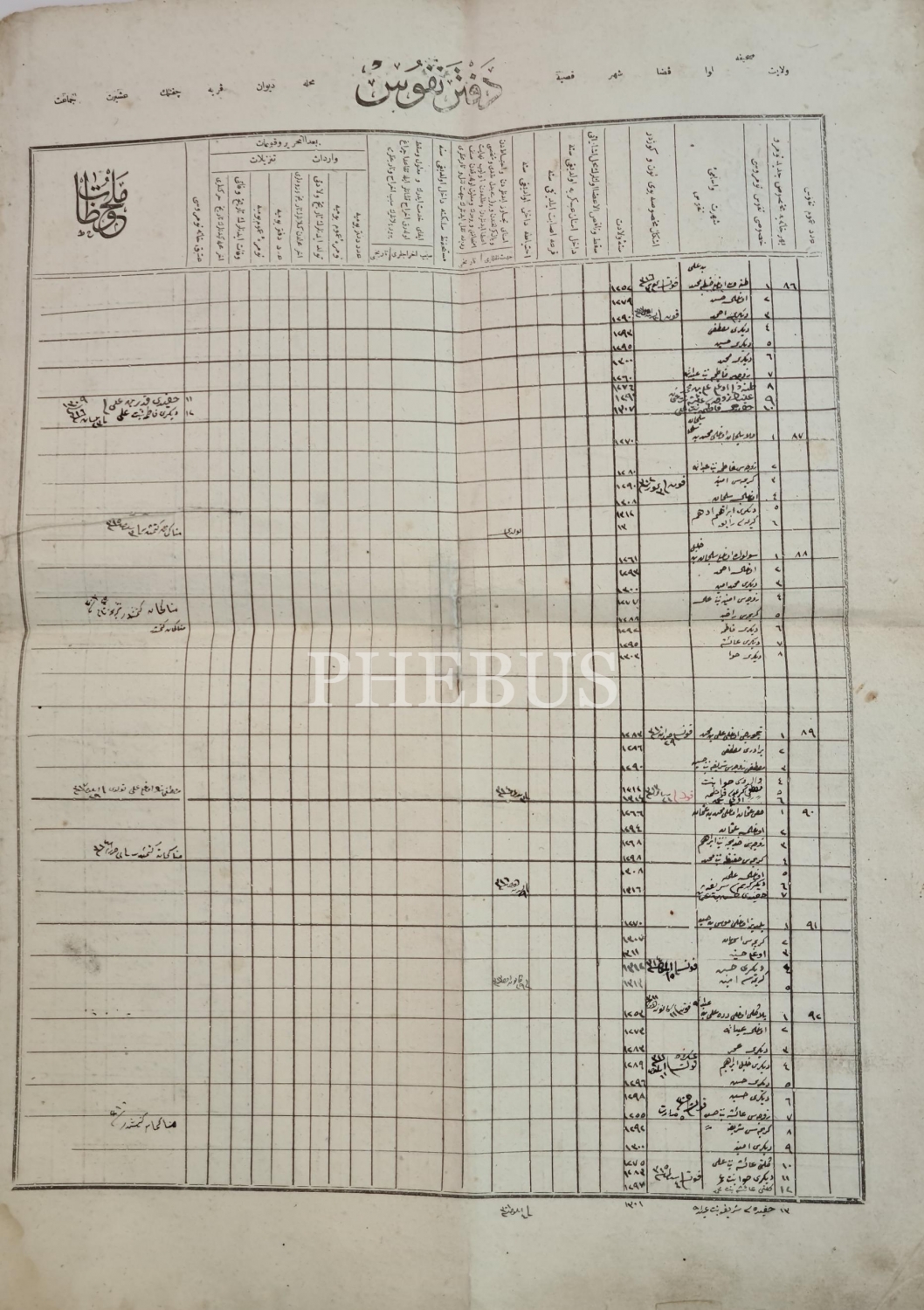 Osmanlıca 1250 - 96 yıllarına ait nüfus defteri, 20x56 cm