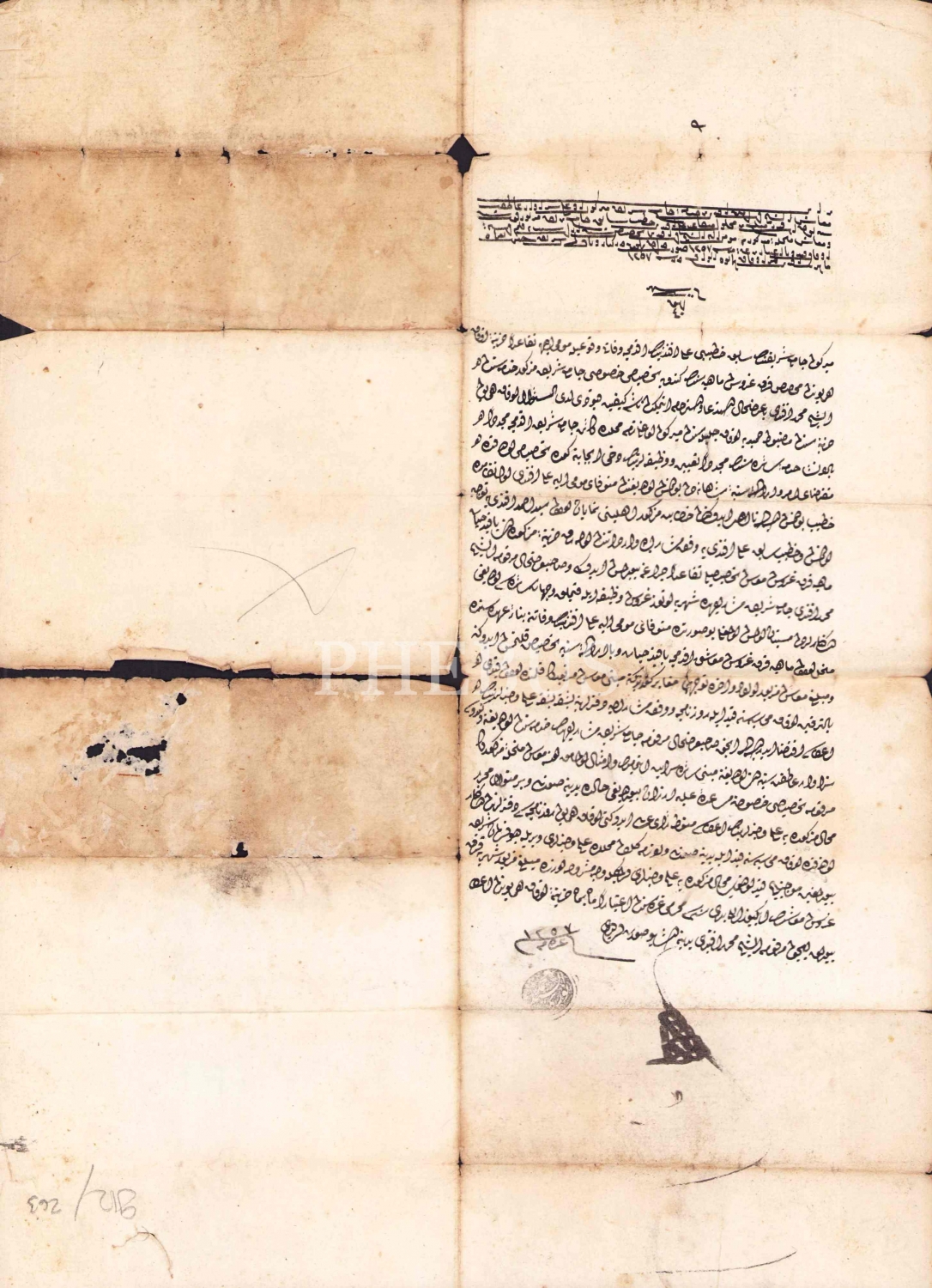Mirgün Cami Şerif'de görevli olan hatip Ali Efendinin vefatı üzerine aylık maaşının yeni hatiplik talebinde bulunan Eşref Mehmed Efendiye verilip verilmeyeceği hakkındaki Osmanlıca hüccet, haliyle, 25x33 cm