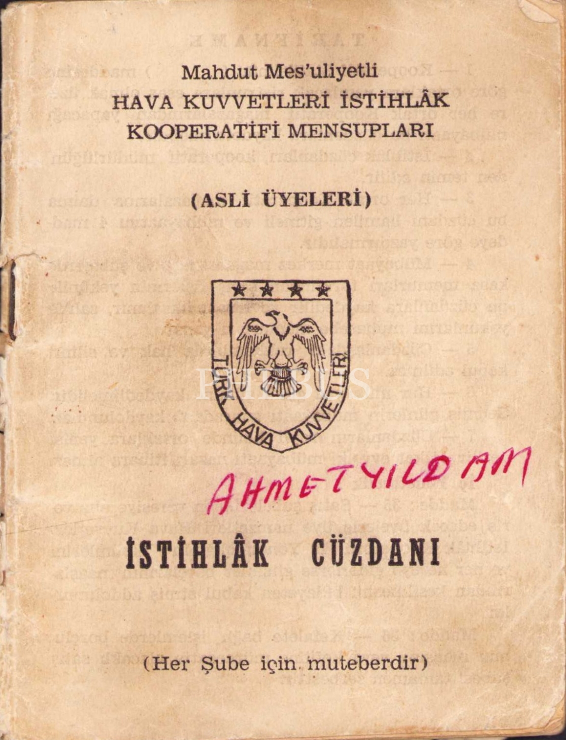 Hava Kuvvetleri Kooperatifi Mensupları Asli Üyeleri İstihlal Cüzdanı, 1971, 10x12 cm