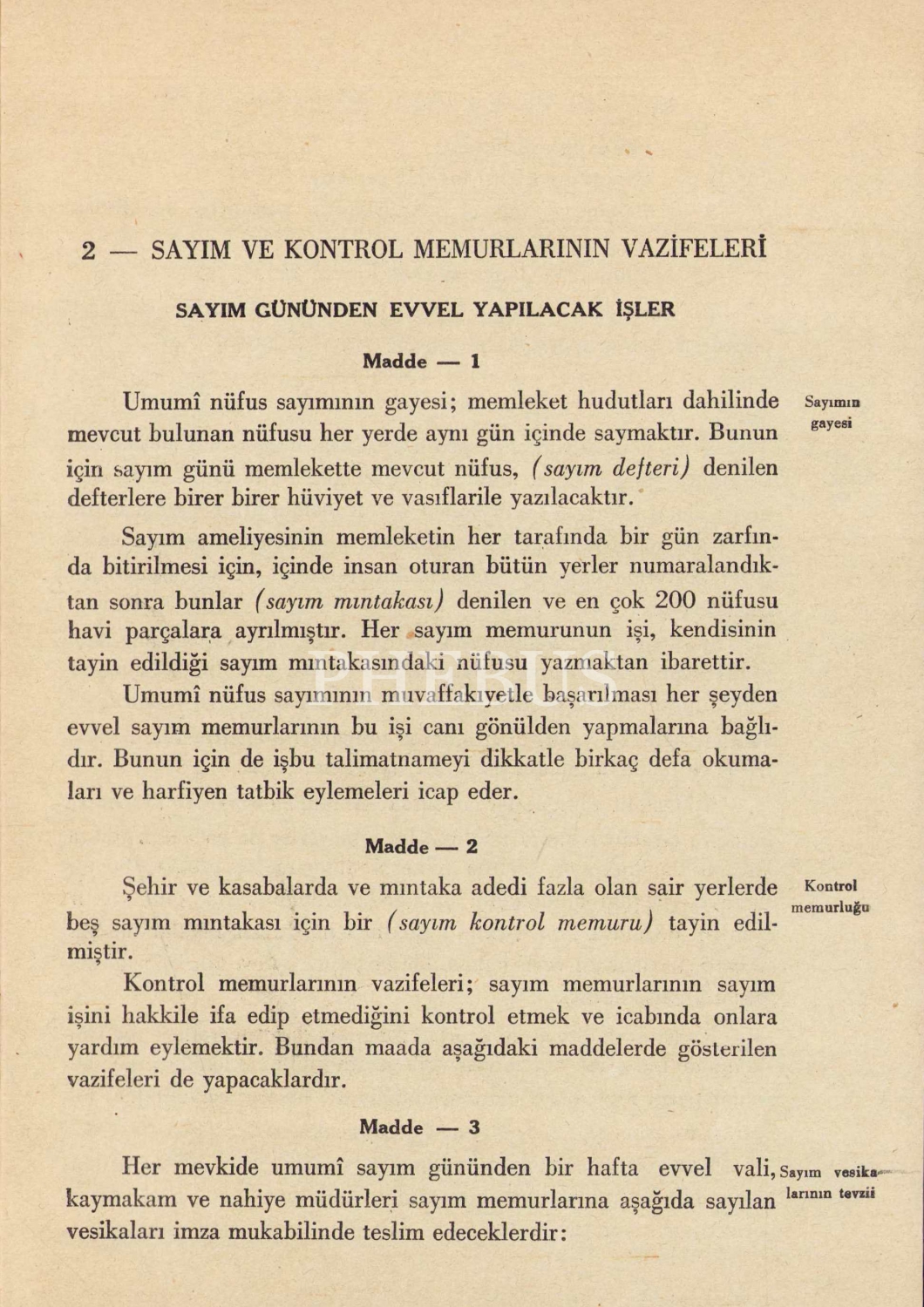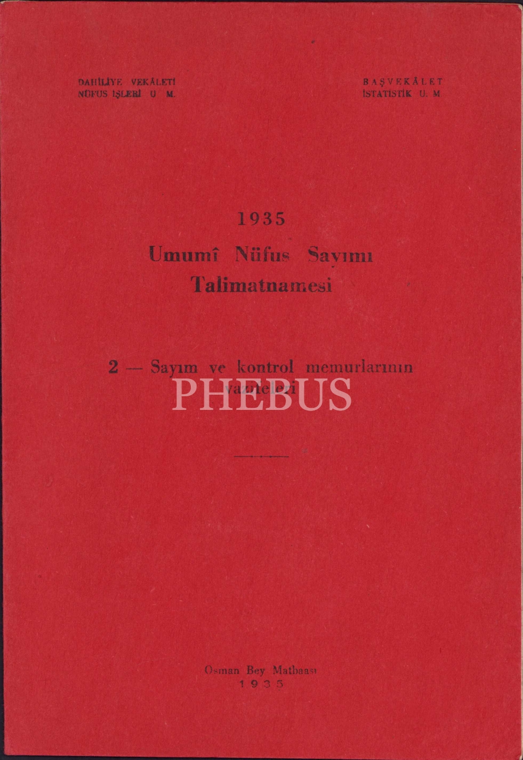 1935 Umumi Nüfus Sayımı Talimatnamesi, Osman Bey Matbaası, 1935, 16 sayfa, 15x23 cm