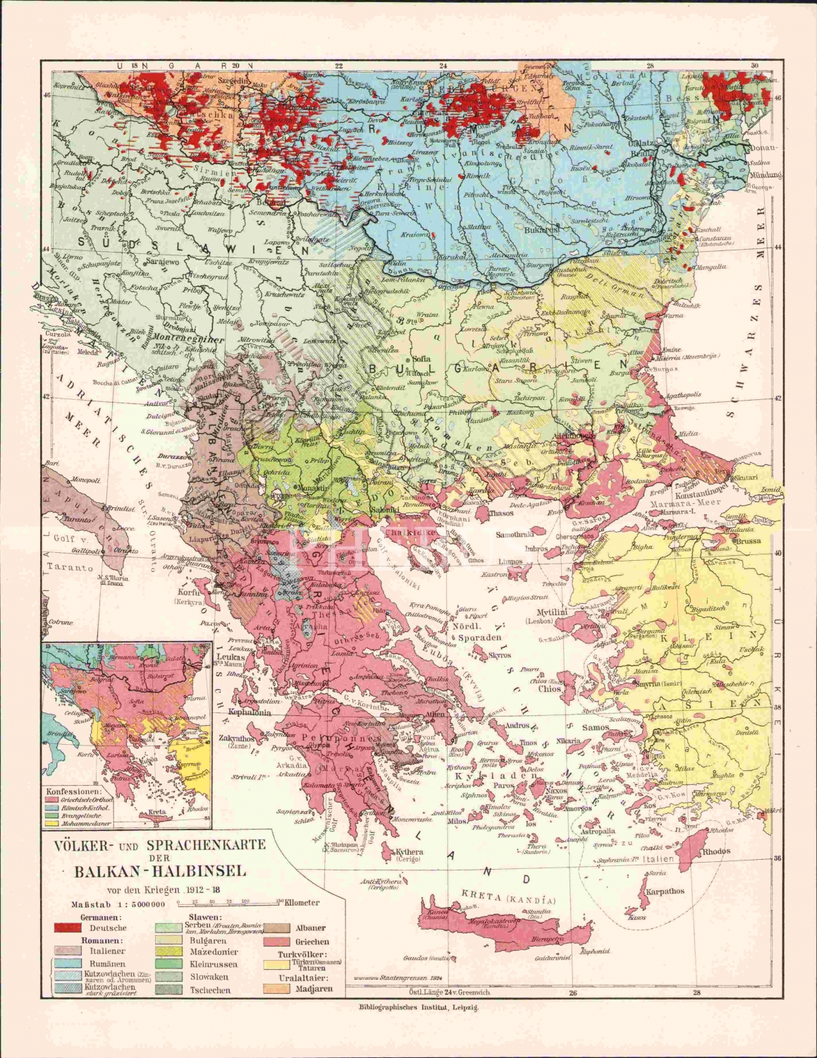 Almanca Balkan haritası, Leipzig baskı, 23x30 cm