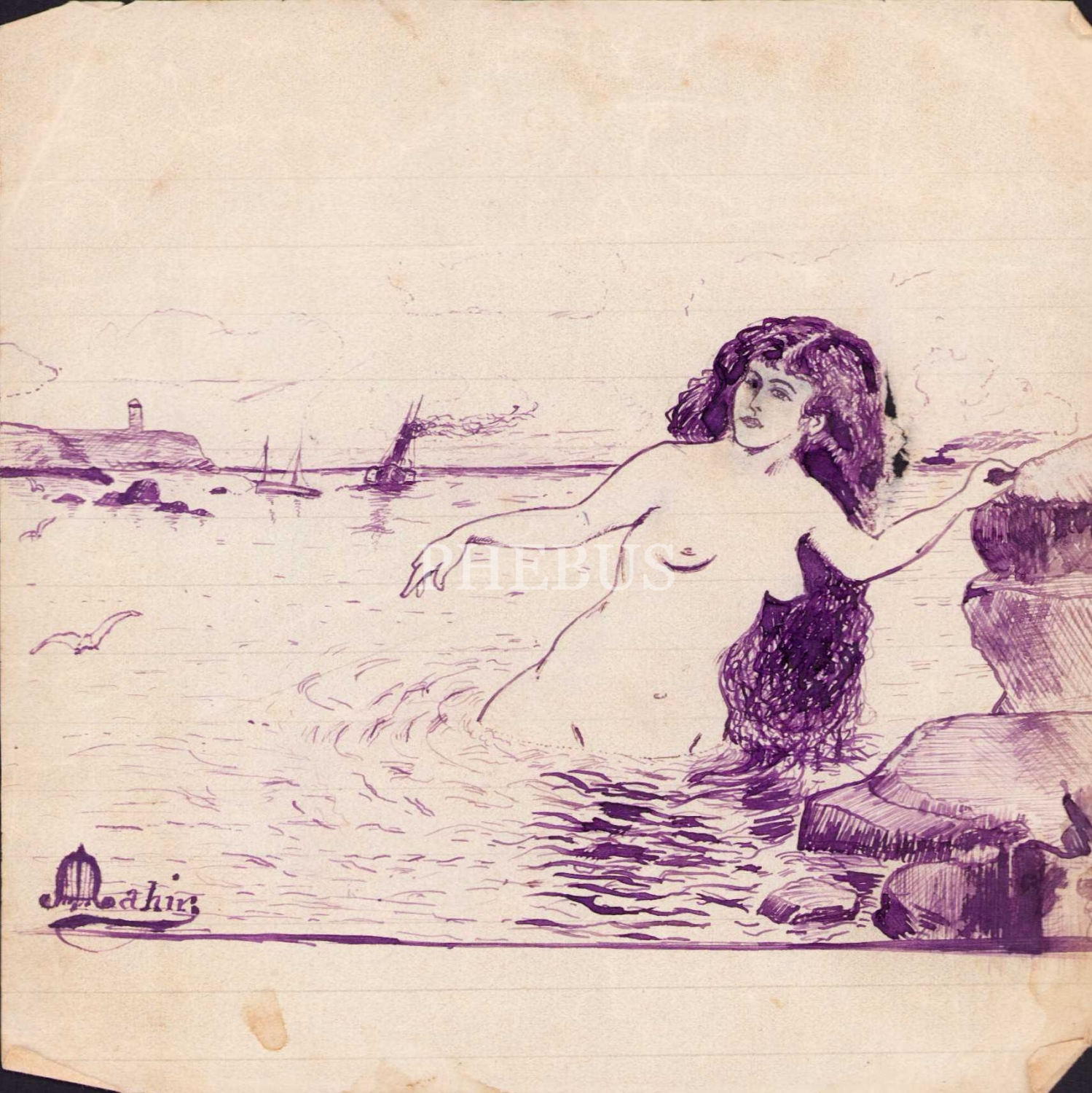Mahir imzalı çizim, haliyle, 14x14 cm