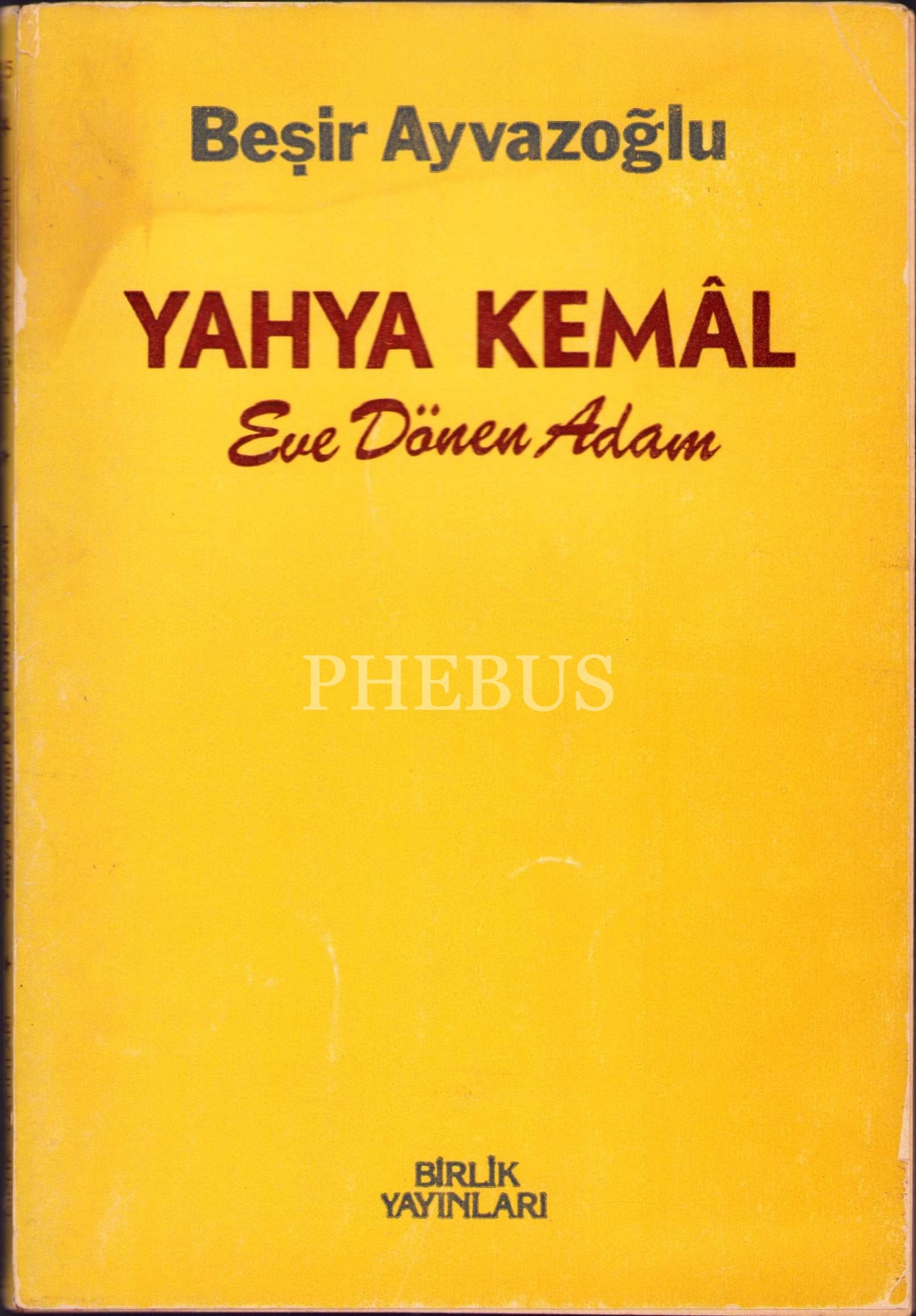Yahya Kemal Eve Dönen Adam, Beşir Ayvazoğlu'ndan ithaflı ve imzalı, İlk baskı, Ankara 1985, sayfalar su görmüş, 112 sayfa