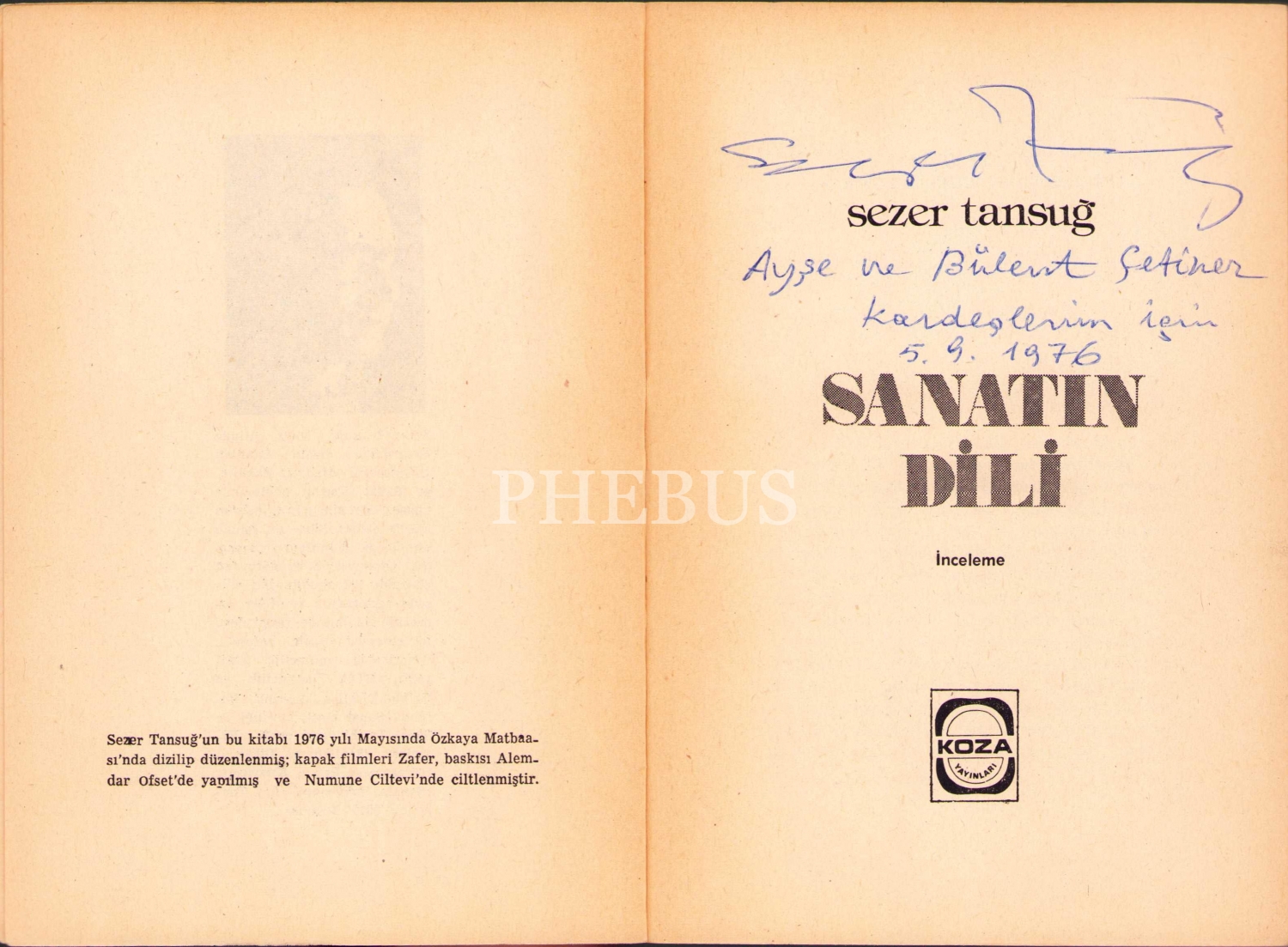 Sanatın Dili - İnceleme -, Sezer Tansuğ'dan ithaflı ve imzalı, İstanbul 1976, 141 sayfa