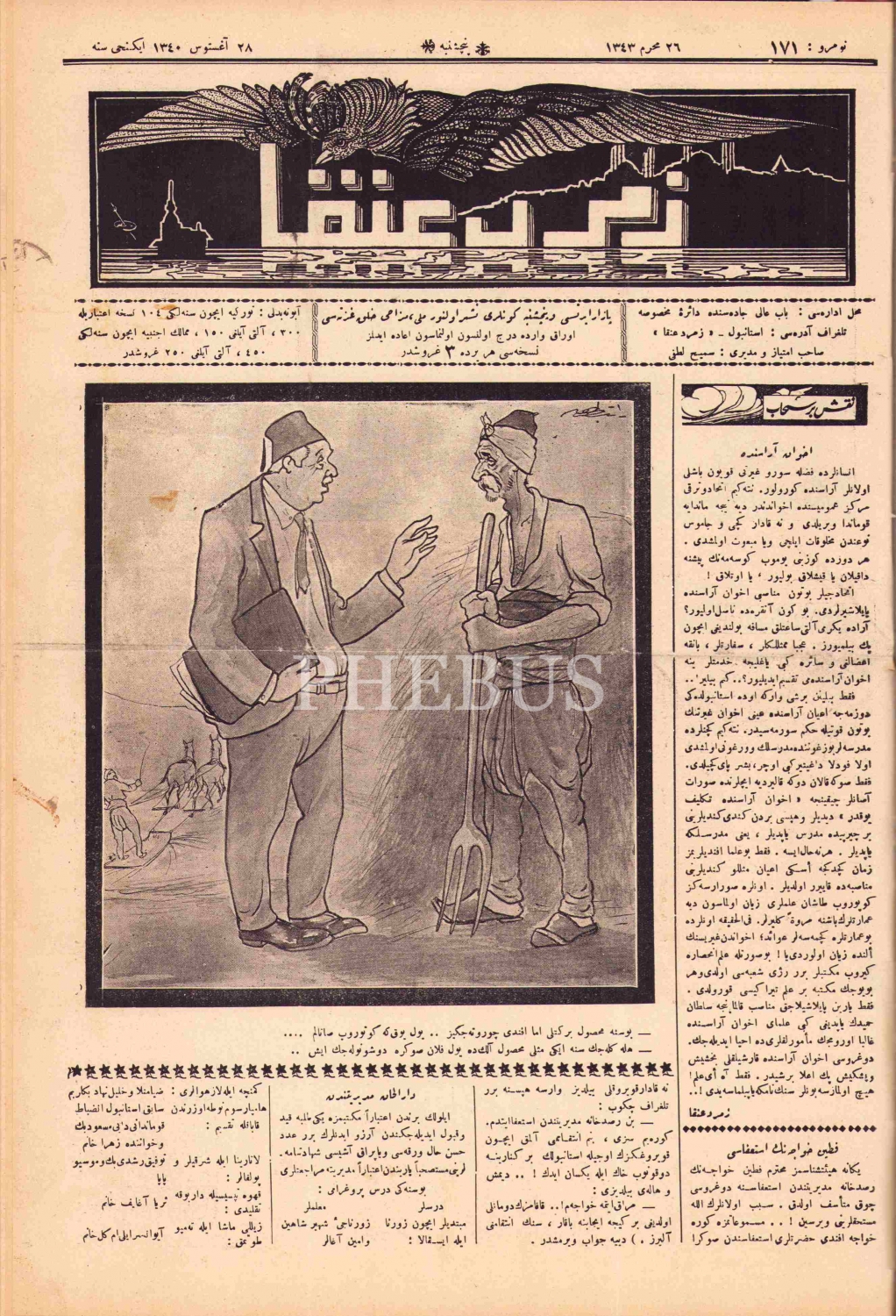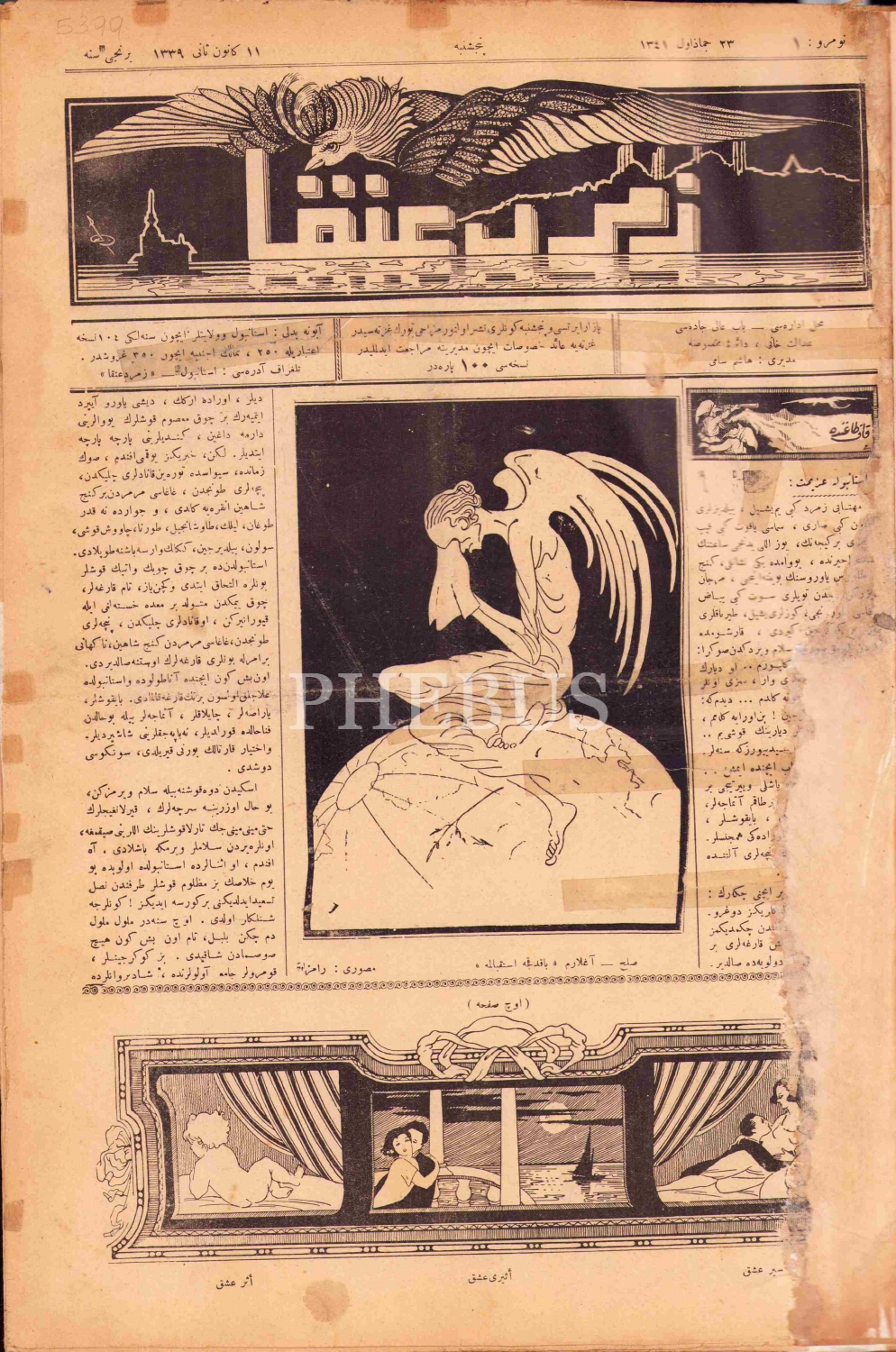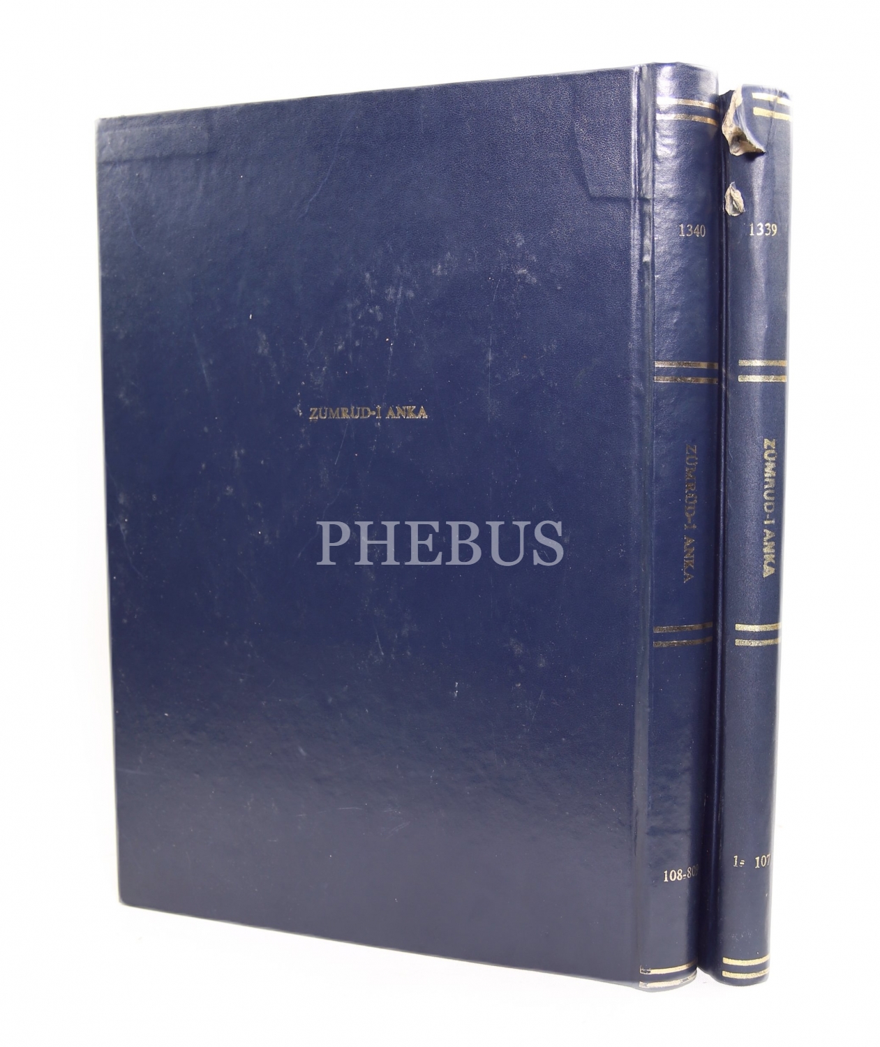 Osmanlıca Zümrüdüanka - mizahi resimli halk gazetesi, İki cilt bir arada [1 - 209 sayıları] 1339/ 41, 1. cilt kapağı haliyle, 29x39 cm