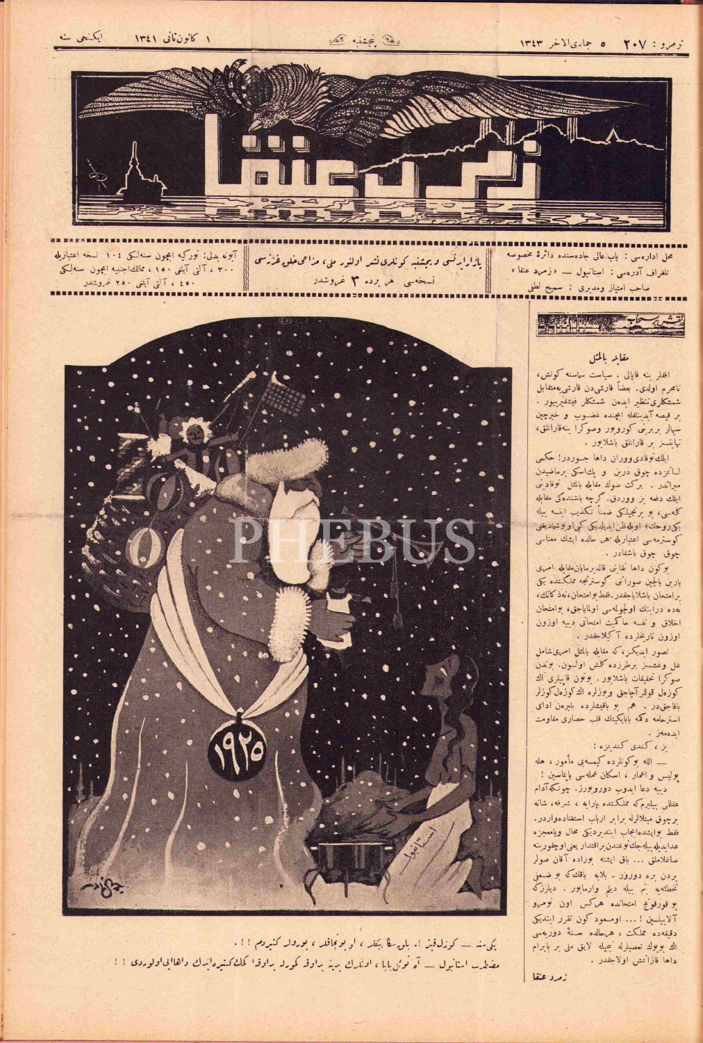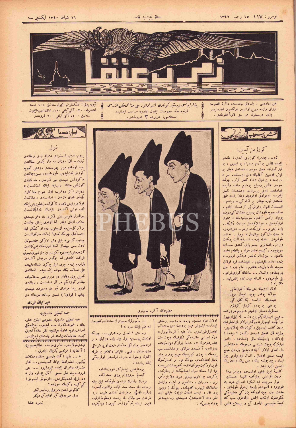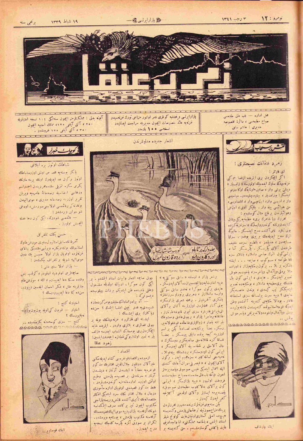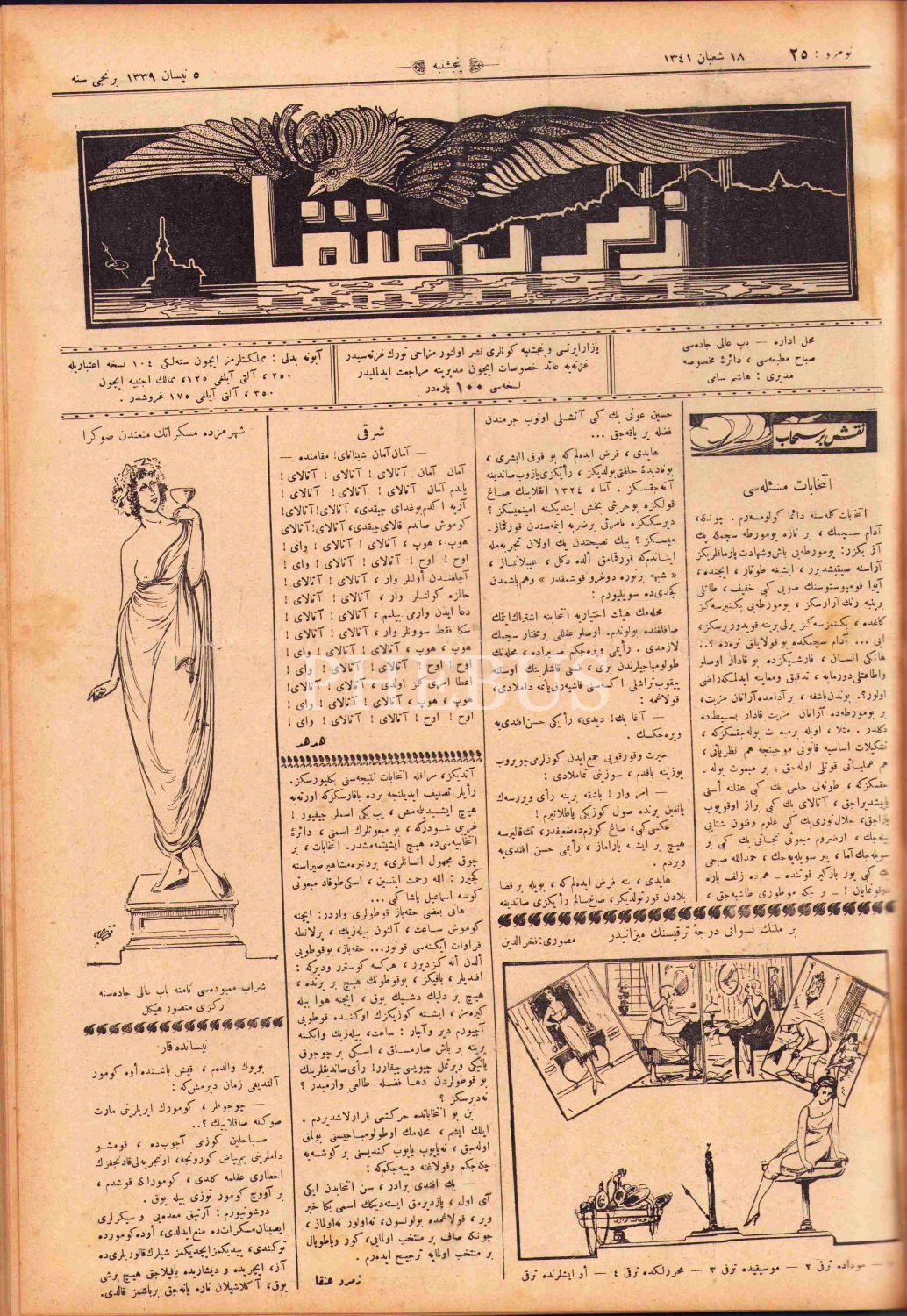 Osmanlıca Zümrüdüanka - mizahi resimli halk gazetesi, İki cilt bir arada [1 - 209 sayıları] 1339/ 41, 1. cilt kapağı haliyle, 29x39 cm