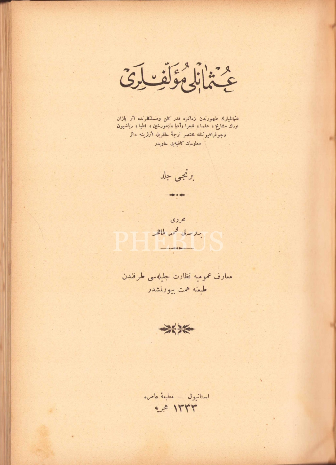 Osmanlıca Osmanlı Müellifleri 1. cilt, Bursalı Mehmed Tahir, İstanbul Matbaa-ı Amire 1333, 408 sayfa, 25x18 cm