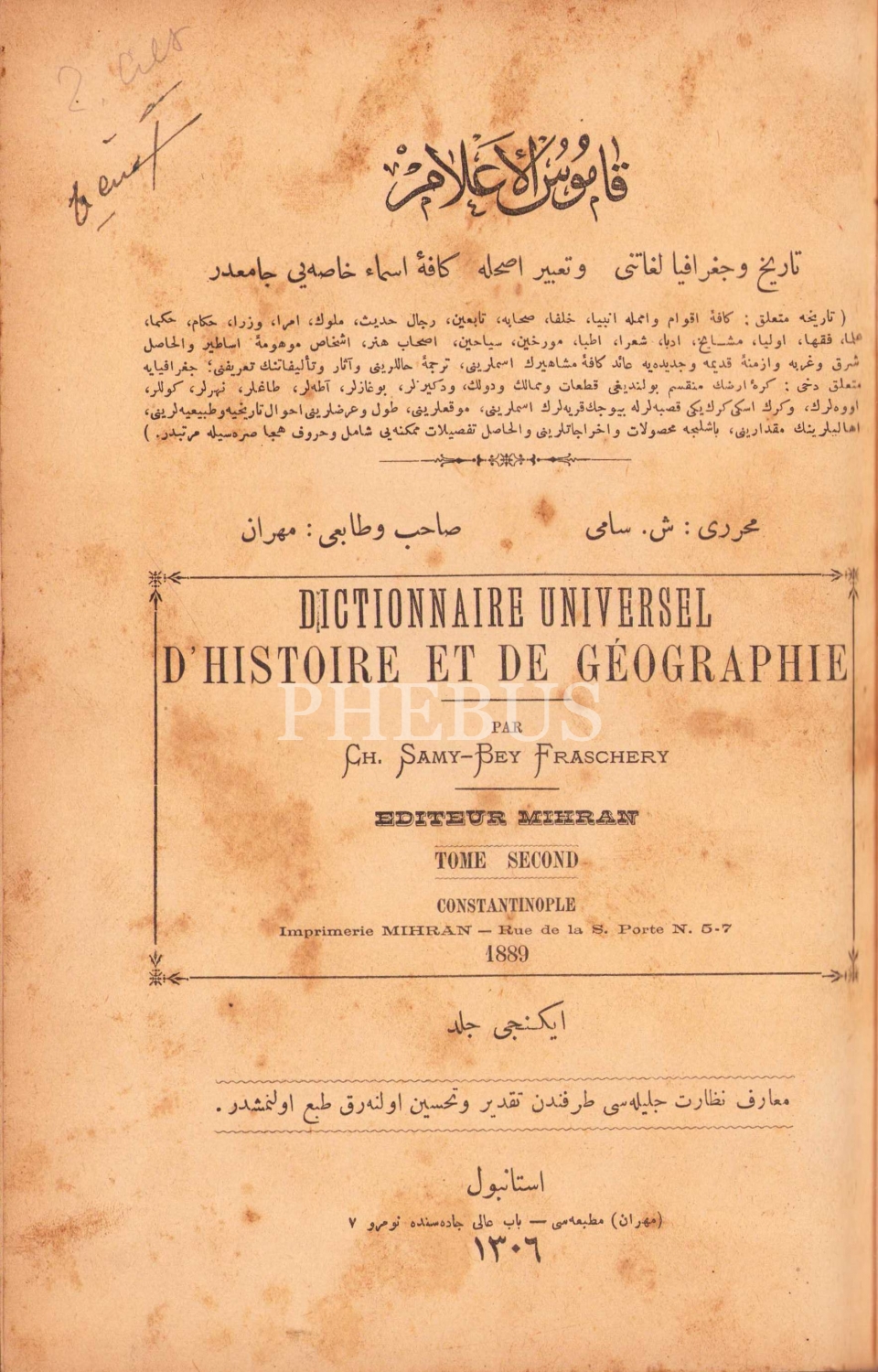 Osmanlıca Kamüsü'l-A'lam 2. cilt, Şemsettin Sami, İstanbul 1306 Mihran Matbaası, 502-1600 sayfa, 25x17 cm