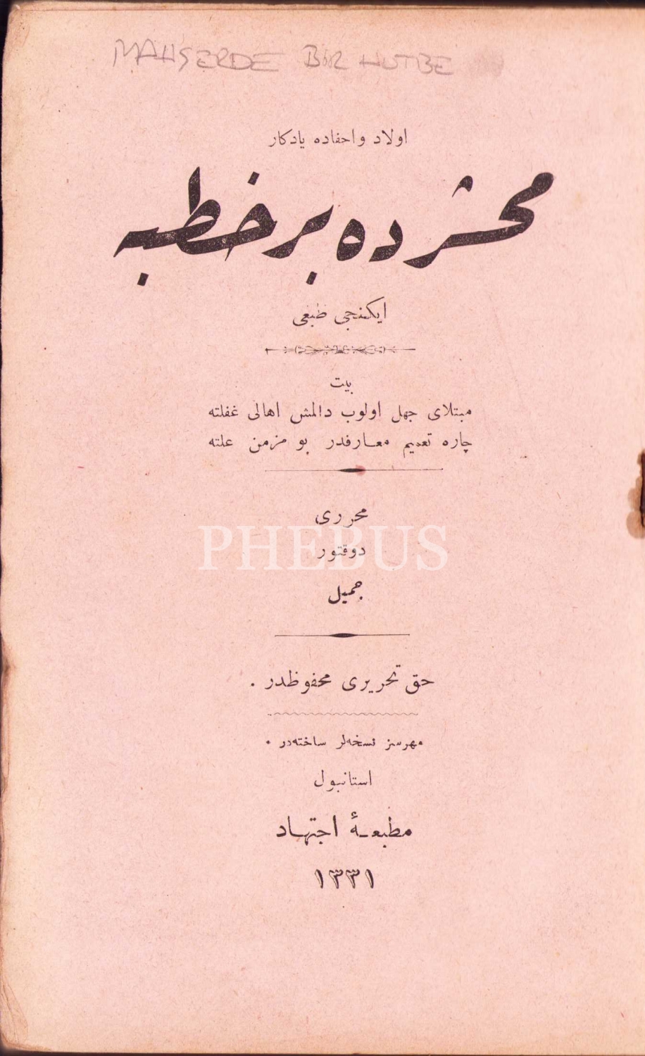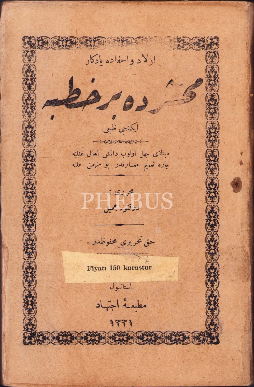 Osmanlıca Mahşerde Bir Hutbe, Doktor Cemil, İstanbul 1331 Matbaa-i İctihad, 190 sayfa, ÖZEGE; 11963, 19x12 cm