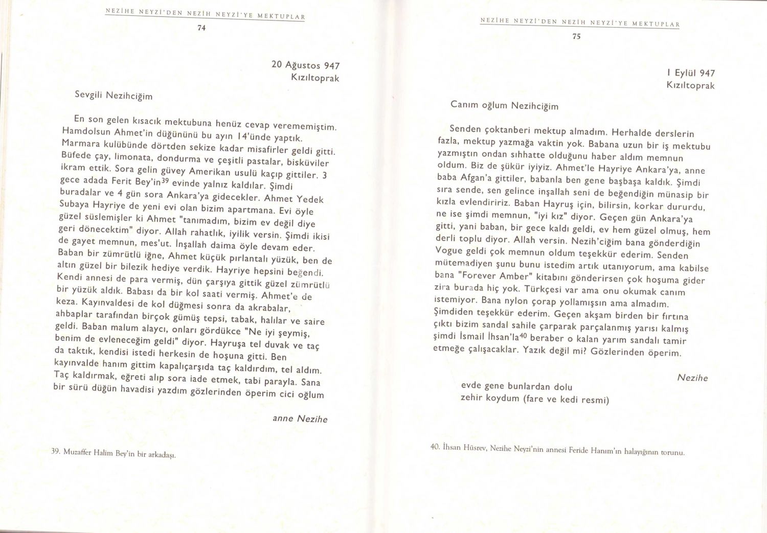 Nezihe Neyzi'den oğlu Nezih Neyzi'ye mektuplar 1947-1948