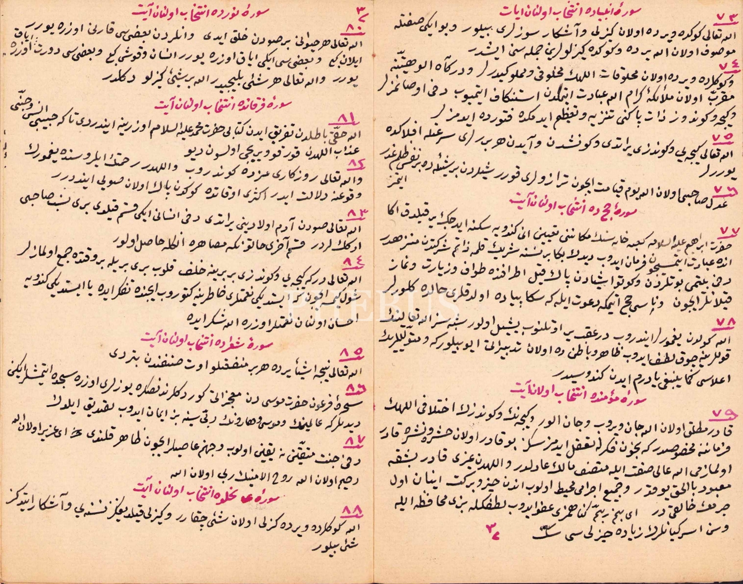 El Yazması surelerin meallerinin yazılı olduğu Osmanlıca defter, 27 sayfa, 11x20 cm