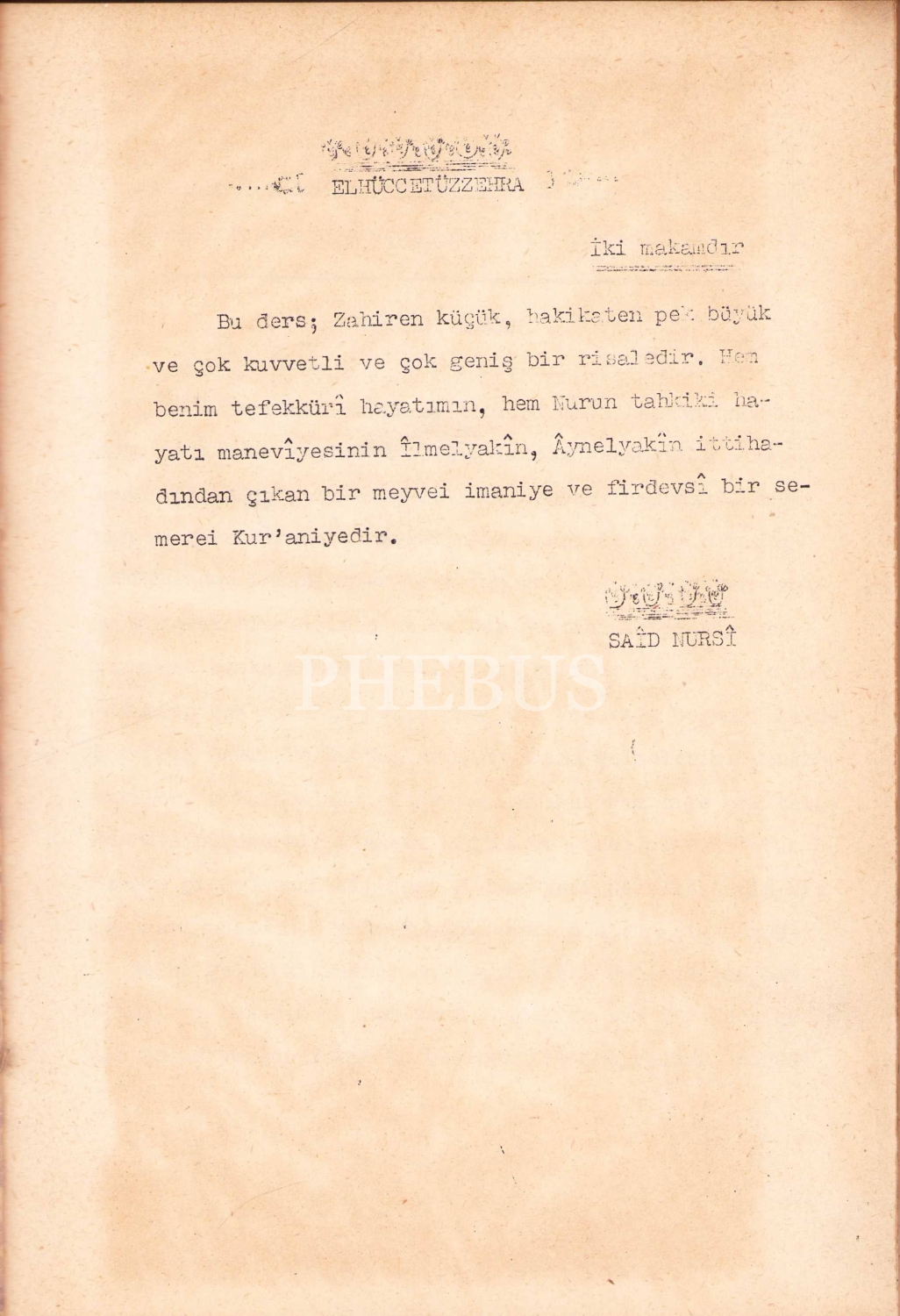 Risalei Nur'dan Elhüccetüzzehra, Bediüzzeman Said Nursi, 117 sayfa, 17x26 cm