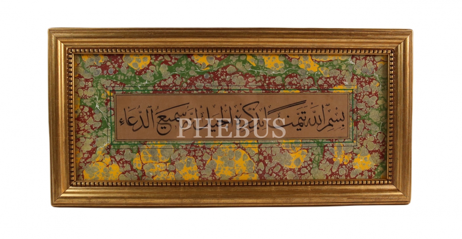 Sülüs yazı, ebru pervazlı, 60x24 cm