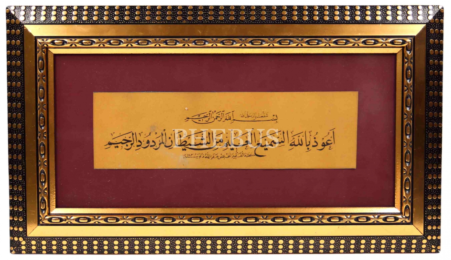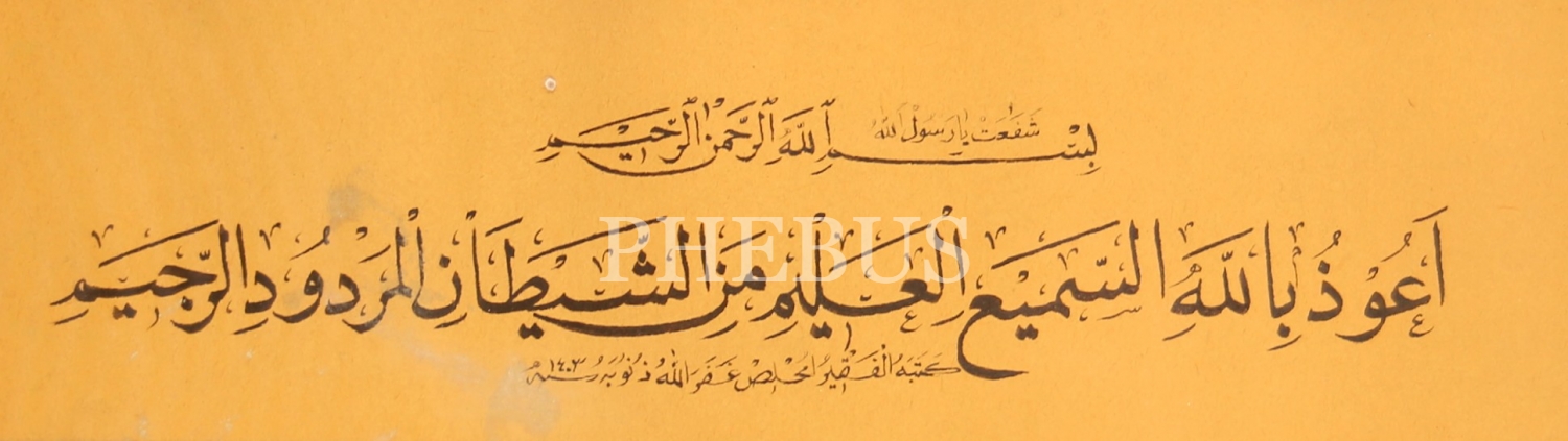 Nesih yazı, Euzu Besmele, ketebe Muhlis, tarih 1403, 48x26 cm