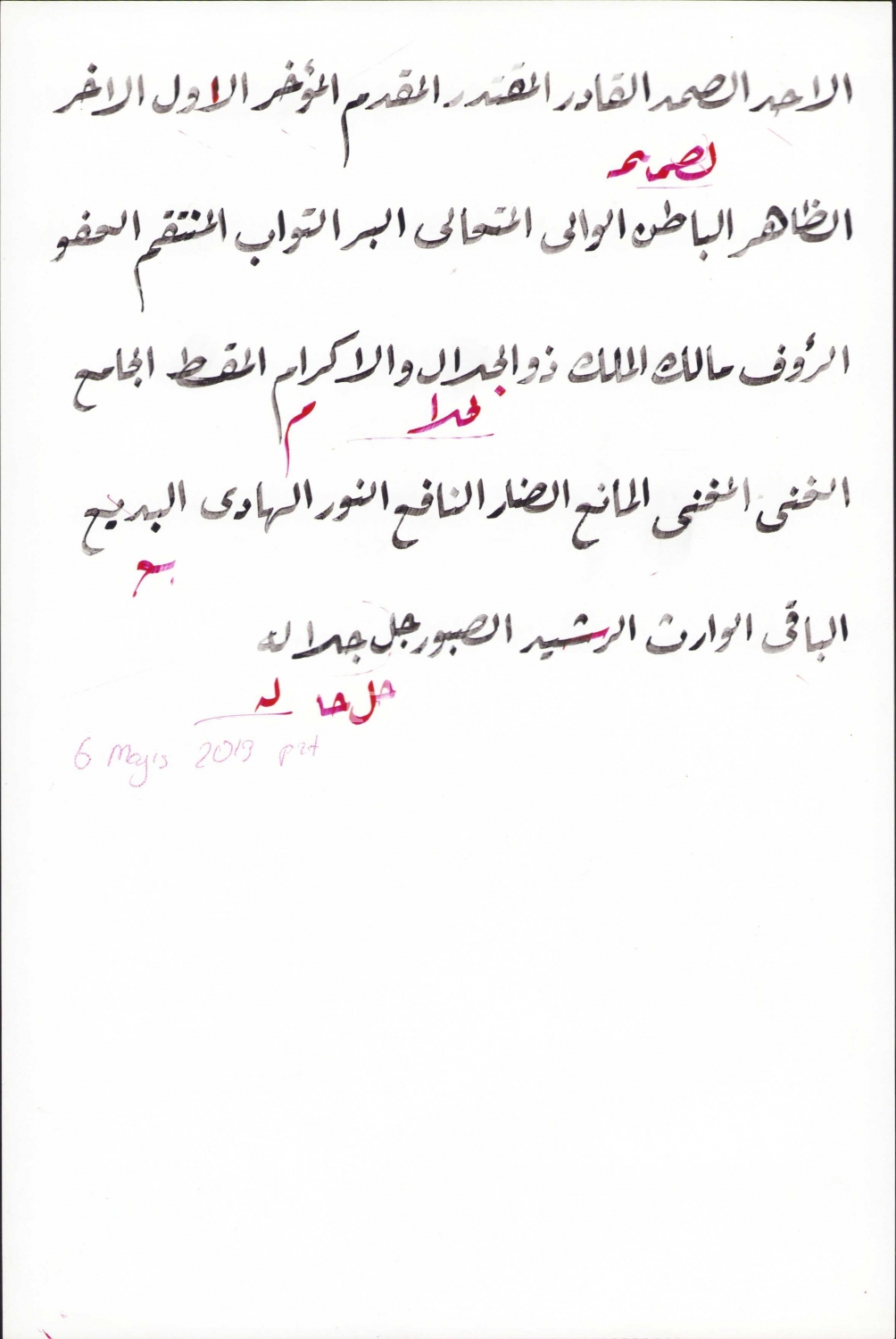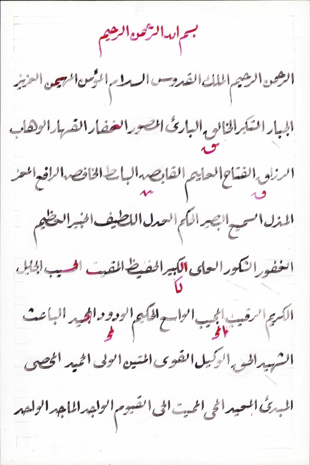 Rika Esmaül Hüsna ders meşki, Hoca çıkartmalı, 19x29 cm