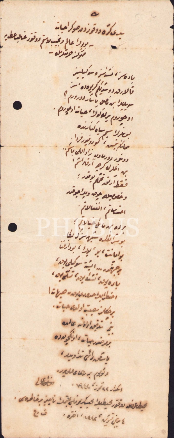 El Yazma Osmanlıca şiir, Yedi Kere Dokuzdan Sonra İsabet isimli, Üsküdar 1944, 10x28 cm