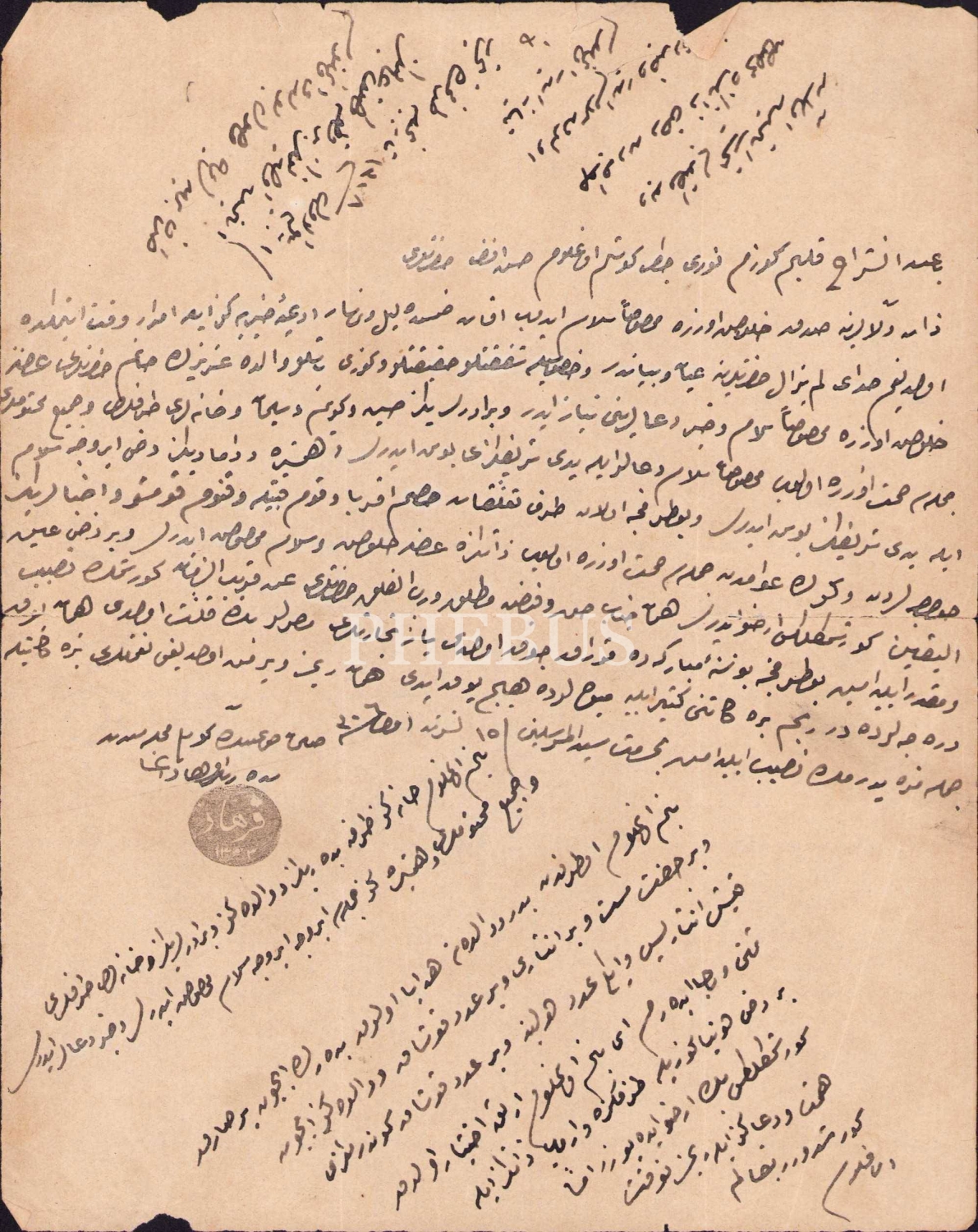 Ferhad mühürlü, 1306 tarihli, Osmanlıca mektup, bir kenarı yırtık, 16x21 cm